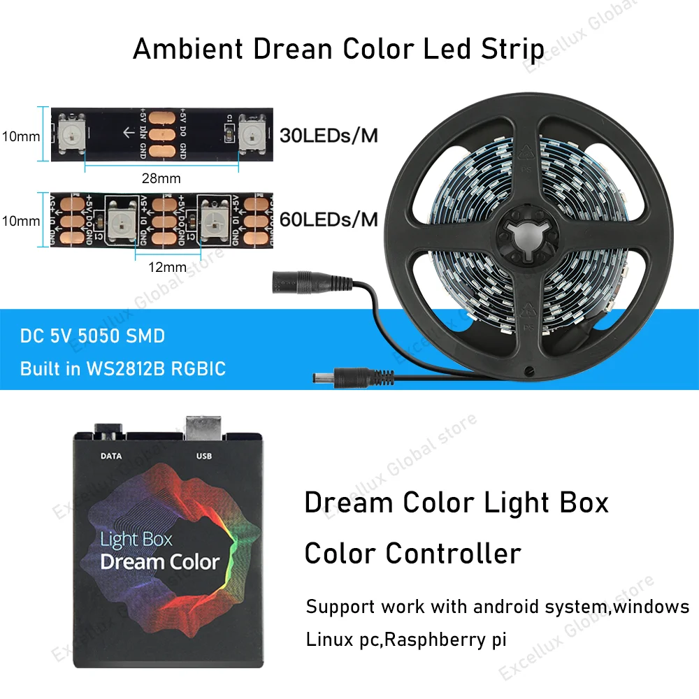 Preguntas y respuestas del comprador1.¿Qué televisión puede funcionar?===Debe funcionar en el televisor del sistema operativo Android 5.1+ o en la caja de TV Android 5.1+.Debe instalar "Aplicación de iluminación ambiental para Androird".(Es necesario pagar una tarifa antes de la instalación). No para Samsung TV/no para LG TV/no para Hisens/X96+.2.¿Puede funcionar en PS4 PS5 X BOX?===No, no puede3.¿Funciona en una computadora con PC con Windows?==Sí, puede.Necesitas instalar ambibox (gratis).La velocidad de fotogramas en la computadora es automática y no se puede configurar.Por debajo de 60 fps.4.¿Puede funcionar en un televisor inteligente?===No puede ser LG, ni Samsung, ni para Apple TV, ni para Google TV.5.¿Puede funcionar en mibox?=No es compatible con DRM. Si le importa, no lo compre.6.¿Puede funcionar en miTV box 4S?===No es compatible con KODI,DRM,Youtbe,netflix.Si te importa, no lo compres.7.¿Algunos contenidos de video no funcionan en la televisión?==Sí, no todos los videos pueden funcionar.Problemas como YouTbe,kodi,dix-max,ace-stream y Netflix utilizan contenido protegido (DRM). La aplicación de luz ambiental no tiene capacidad para trabajar con ellos.Para que funcione, debes utilizar el cliente especial.Por ejemplo SmartYoutube.8. Si tengo un televisor Samsung/lg y un televisor andoird 5.1+, ¿pueden usar este producto?==Sí, debe conectar la televisor Android al producto e instalar la aplicación requerida, luego podrá usarla.(La luz de fondo solo funciona en aplicaciones del sistema operativo Android que no utilizan contenido protegido).9.Lo he instalado, ¿por qué todos los LED no se encienden?===La tira de LED solo funciona correctamente después de configurarla correctamente e instalarla en un televisor o una PC.Si tiene algún problema, contáctenos con el vendedor para verificarlo por usted. Gracias.Tira de luces LED USB de 5V WS2812B 5050 RGB Kit ambiental de Color de sueño para iluminación de fondo de pantalla de PC de escritorio HDTV 1M 2M 3M 4M 5M1. ¿Qué tipo de dispositivo puede funcionar con nuestro producto?(1)Windows: use Ambibox o Prismatik