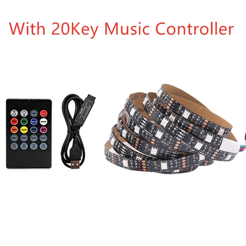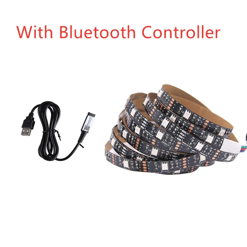 Tira de luces LED USB de 5 V, RGB, resistente al agua, PCB negro, 5050, 50CM- 5M, 5 V, cinta USB, retroiluminación de PC y TV con mando a distancia