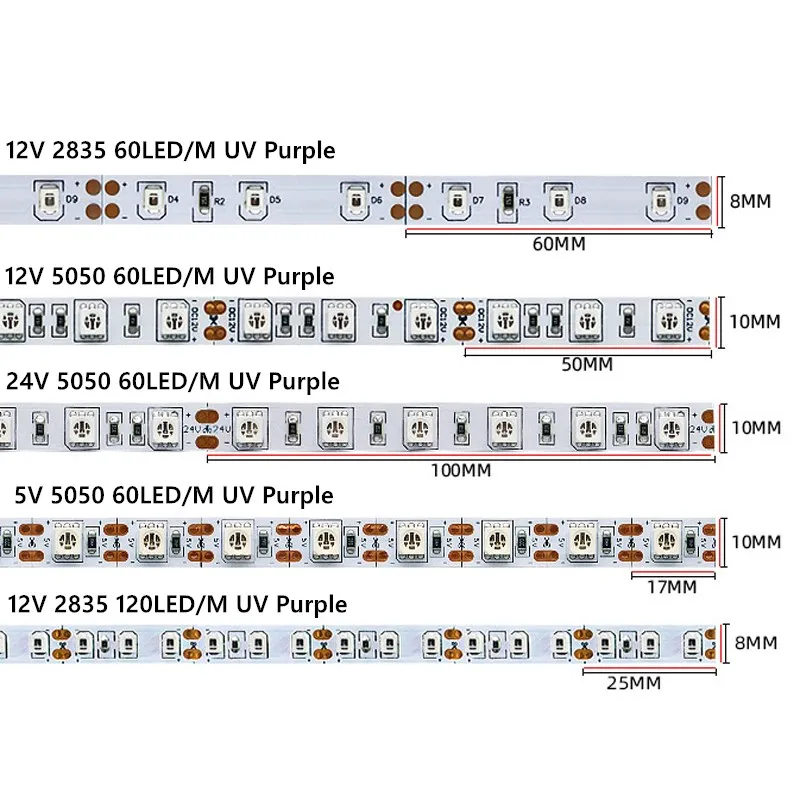 Comprar Tira de luces Led UV de 12V y 24V, cinta luminosa Flexible de diodo, color púrpura, SMD 5050, 2835, 60/120 LED/M