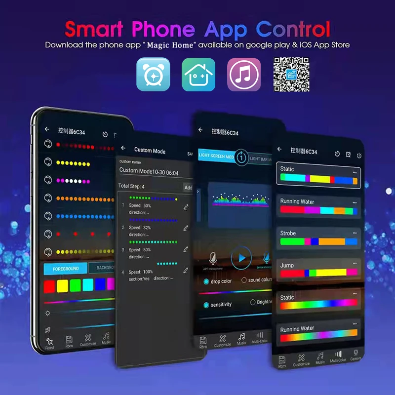 Tira de luces LED WS2812B, Control por Bluetooth, iluminación de Festival, fondo decorativo para sala de estar, detección de sonido, lámparas profesionales