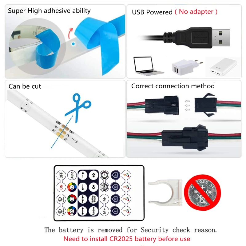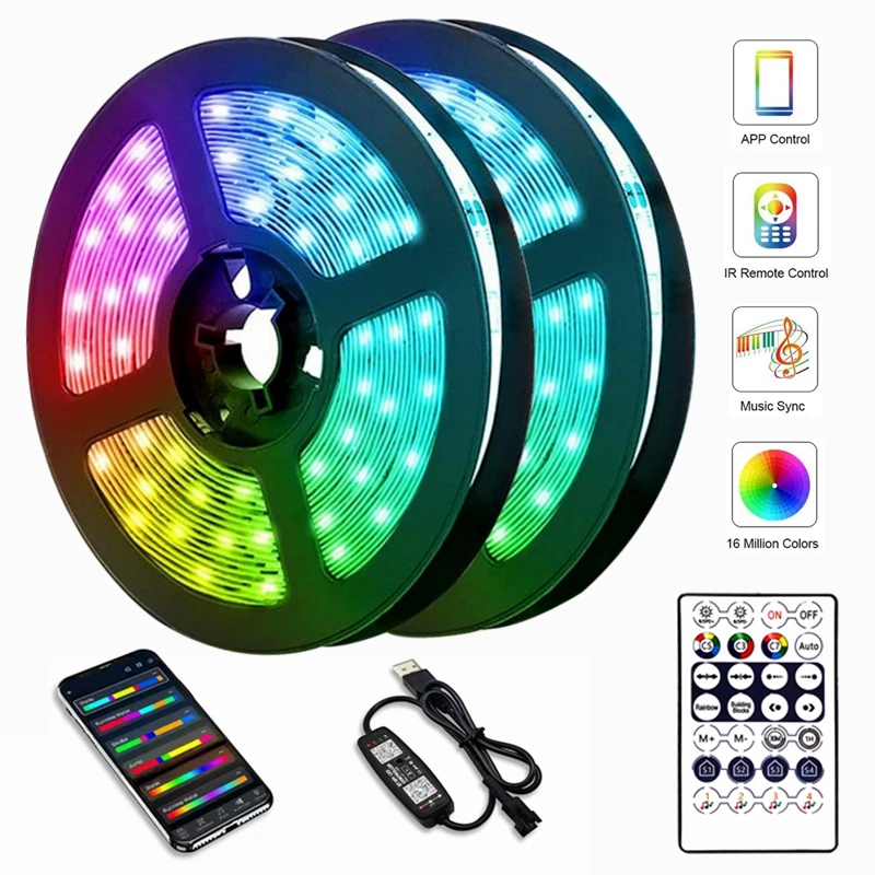 Comprar Tira de luces LED WS2812B, Control por Bluetooth, iluminación de Festival, fondo decorativo para sala de estar, detección de sonido, lámparas profesionales
