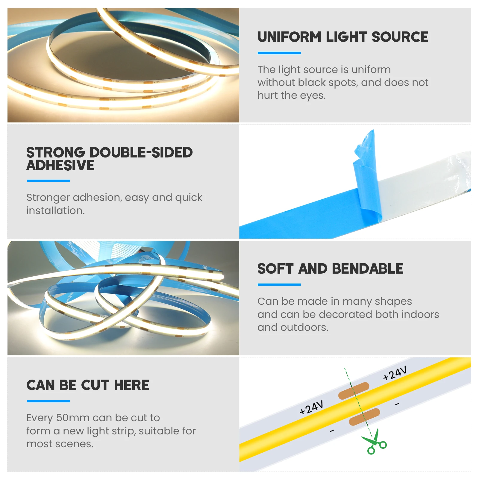 1 × tira de LED COB (la fuente de alimentación no está incluida)