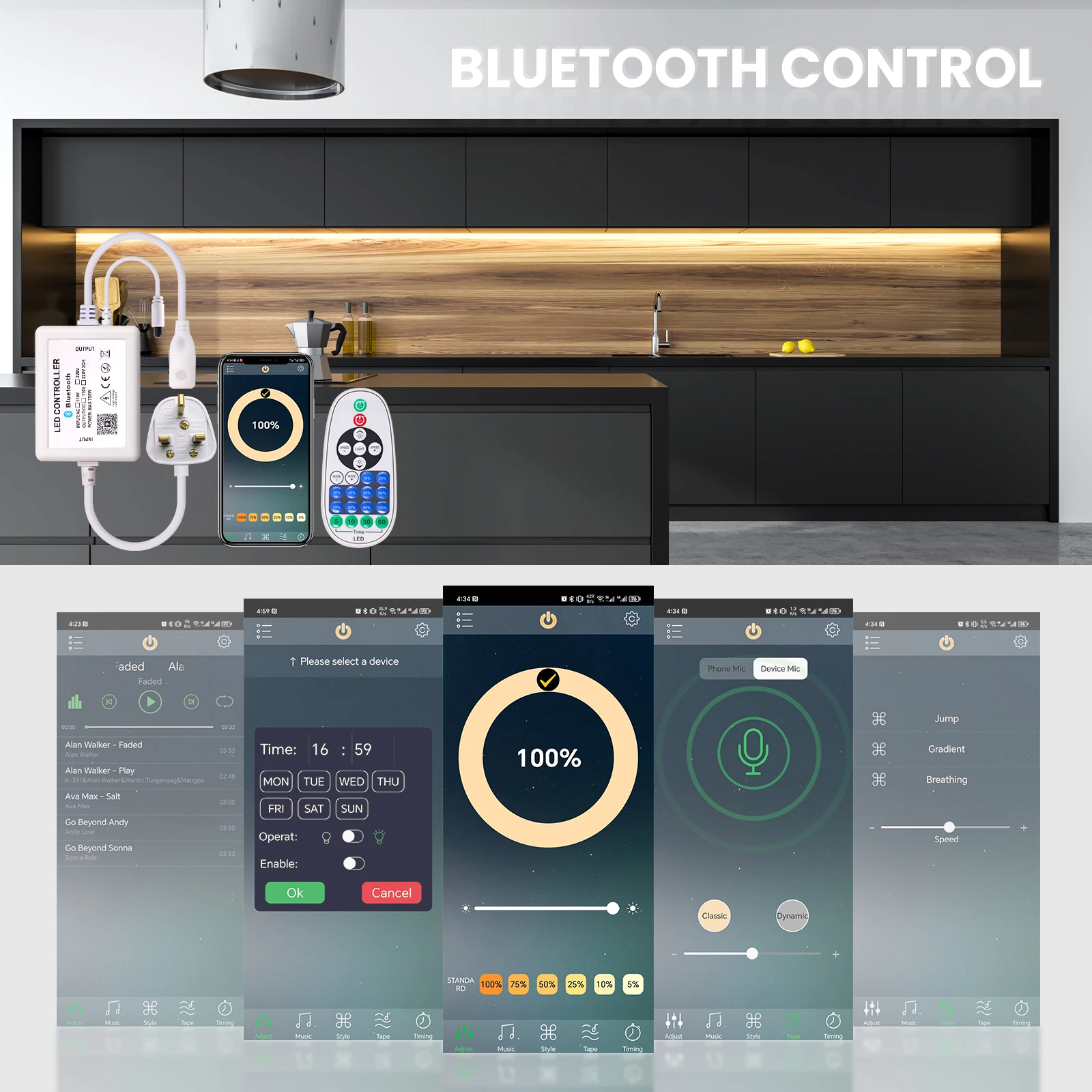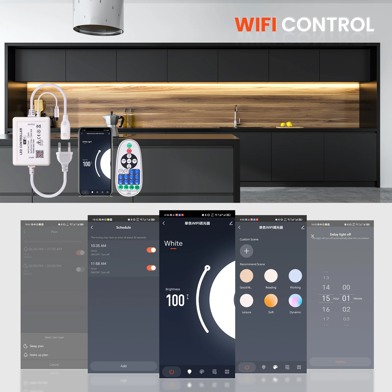 Dimmer control methods: 23Key IR Remote Control/Bluetooth APP Control/Wifi APP Control/Wall Touch RF Control