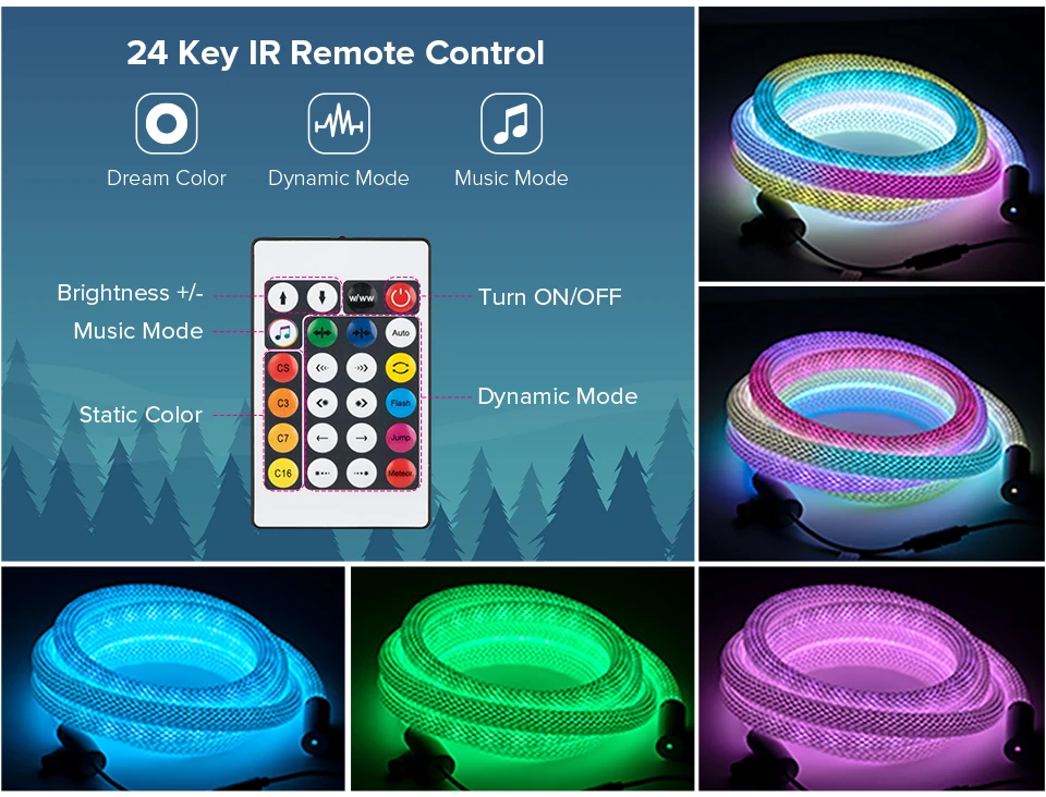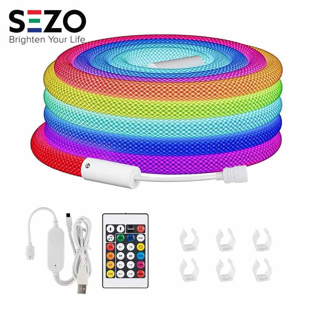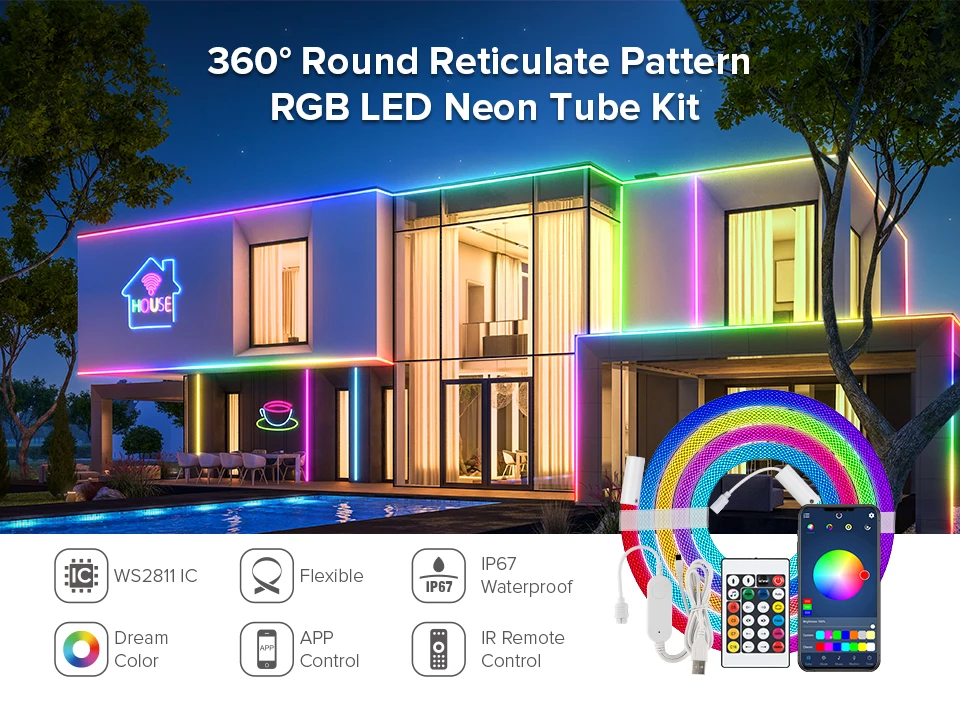WS2812B WS2811 tira de neón 50Leds/M direccionable tela redonda de silicona patrón reticulado tiras LED Dreamcolor cinta de luz IP67