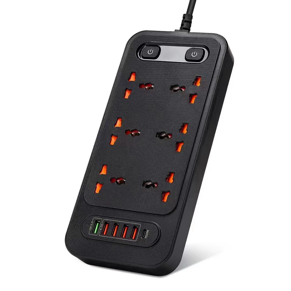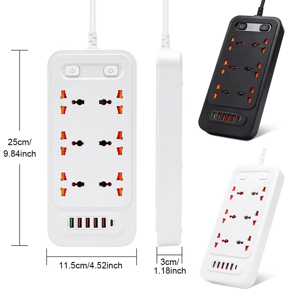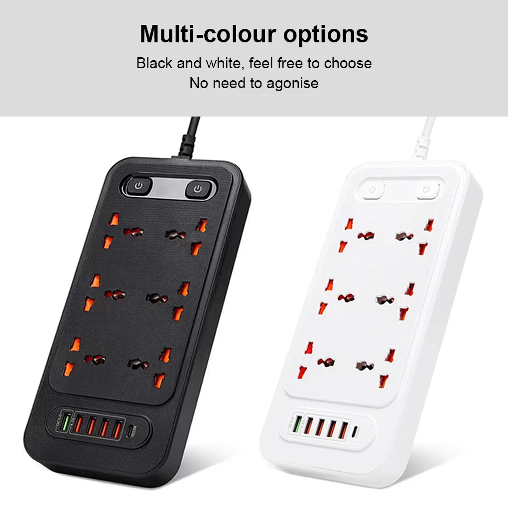 Puerto múltiple: esta toma de corriente está diseñada con muchos enchufes y también tiene puertos USB, satisfaciendo sus diferentes necesidades.