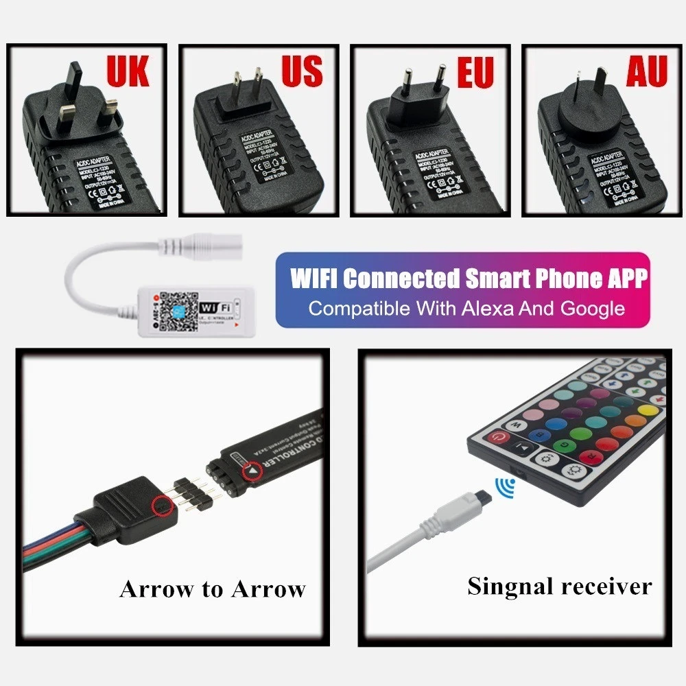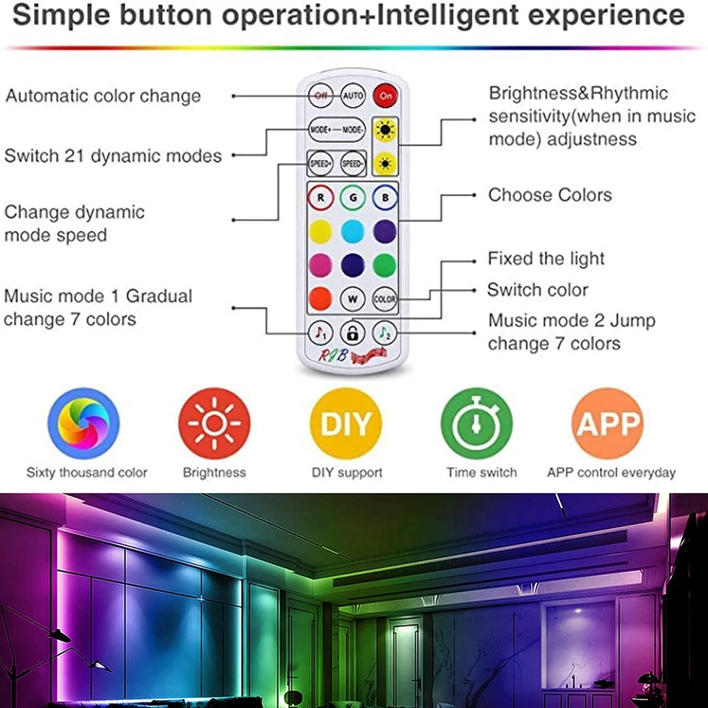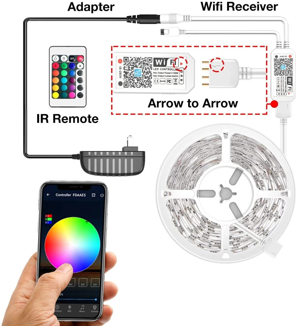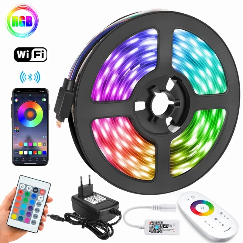 Comprar Tiras de luz LED SMD para decoración de sala de estar y dormitorio, lámpara luminosa de diodo Flexible con Control WIFI y Bluetooth, 12V