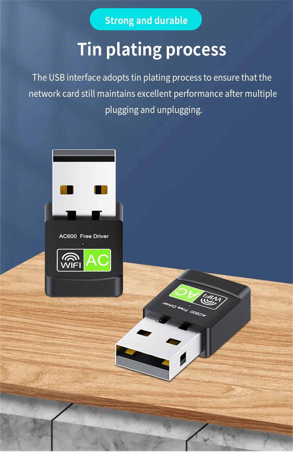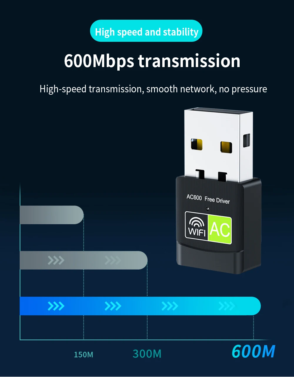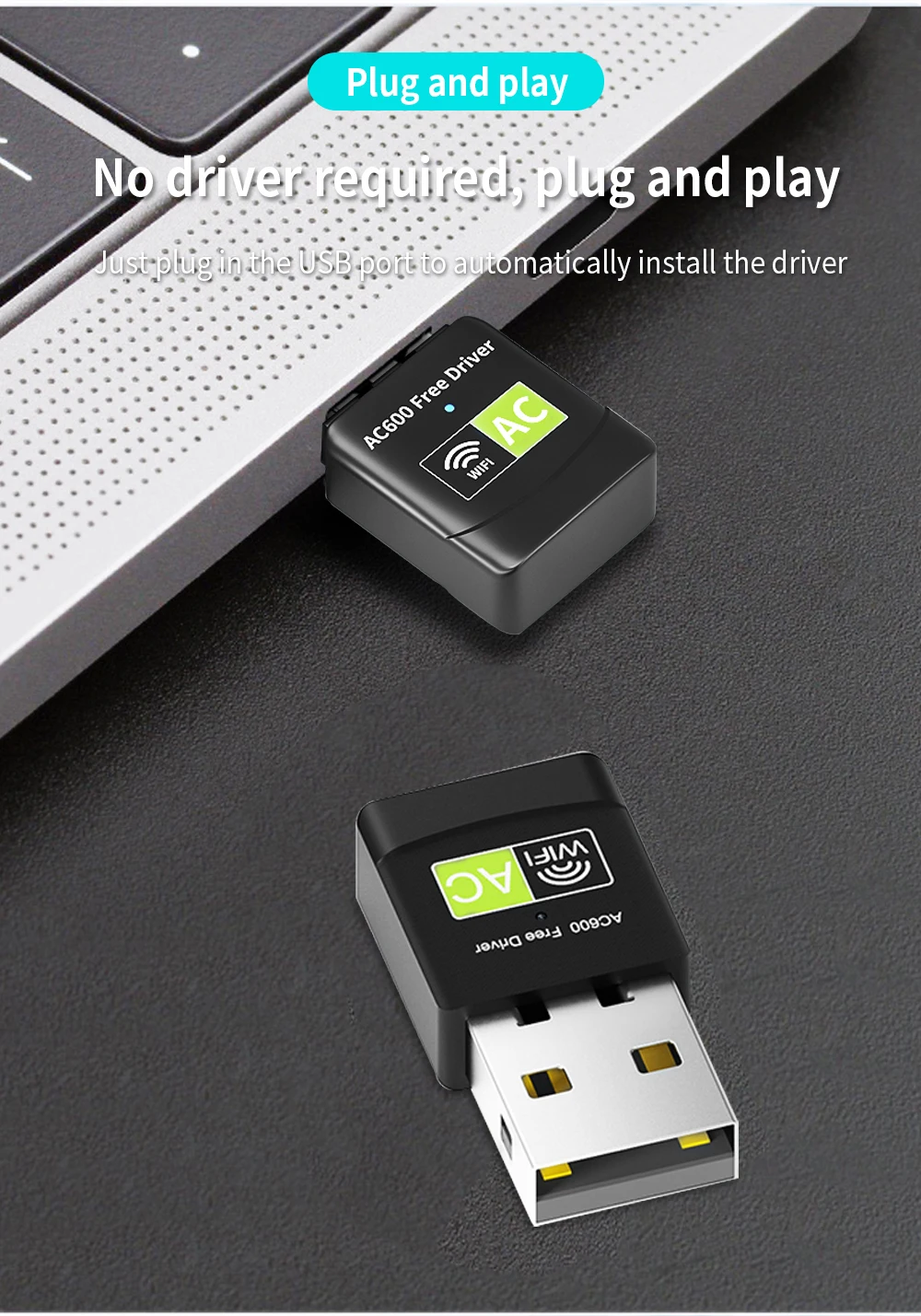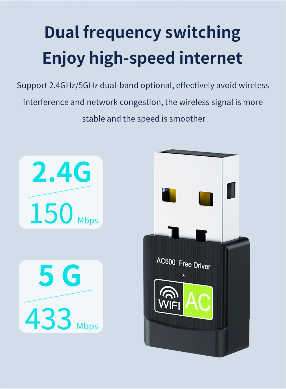 Adaptador de tarjeta de red inalámbrica de doble banda TISHIRC de 600Mbps compatible con adaptador WIFI Ethernet USB 2,4 de 2,0 GHz + 5GHz para PC portátil