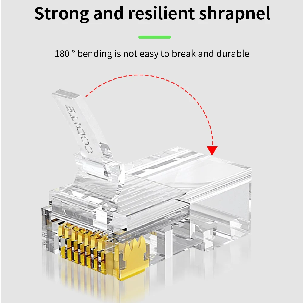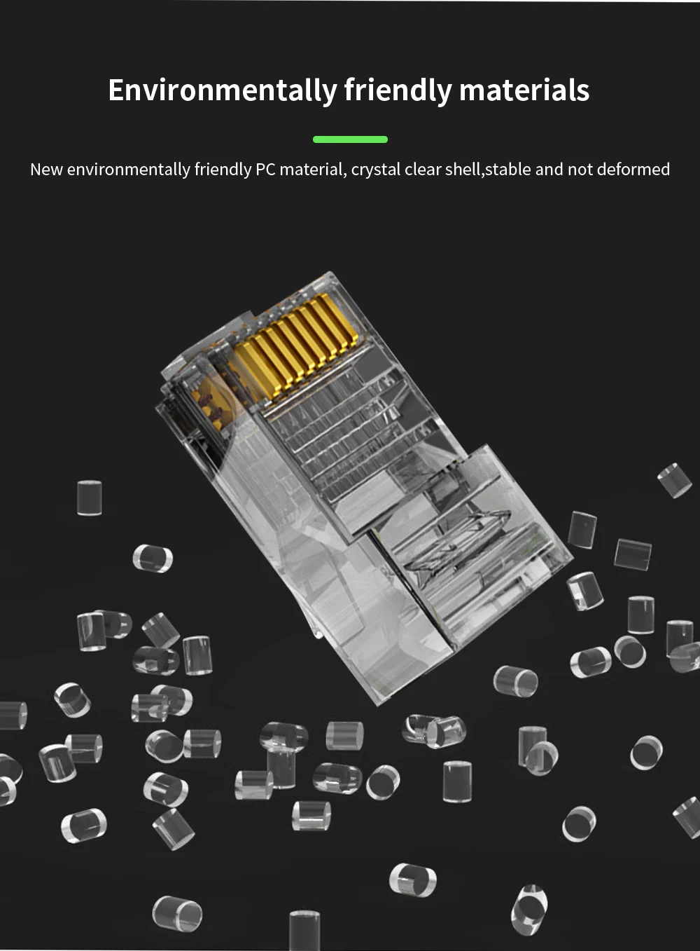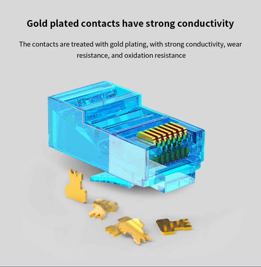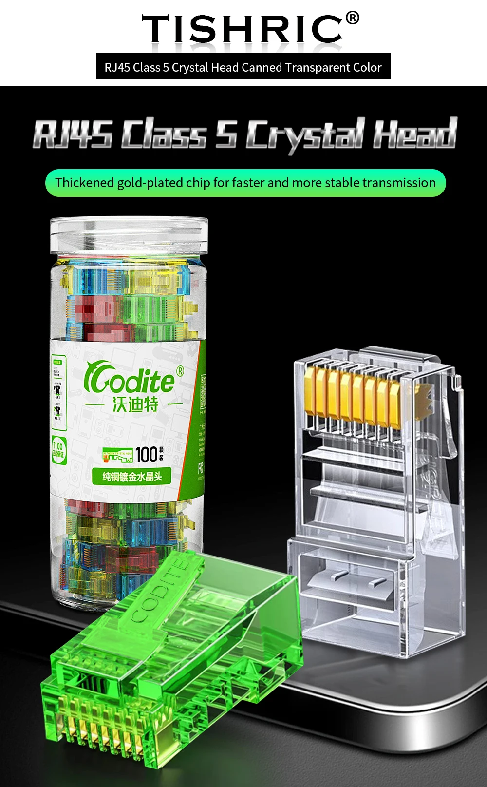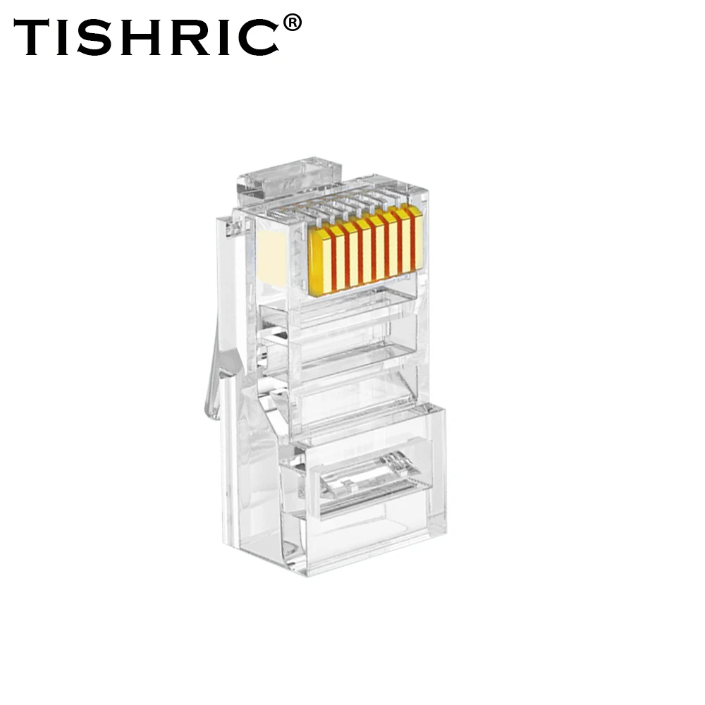 Comprar TISHRIC 100PCS RJ45 Ethernet Cables Module Plug Network Connector RJ-45 Crystal Heads Cat5 Transparent Cat5e Gold Plated Cable