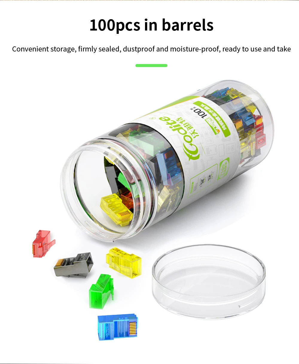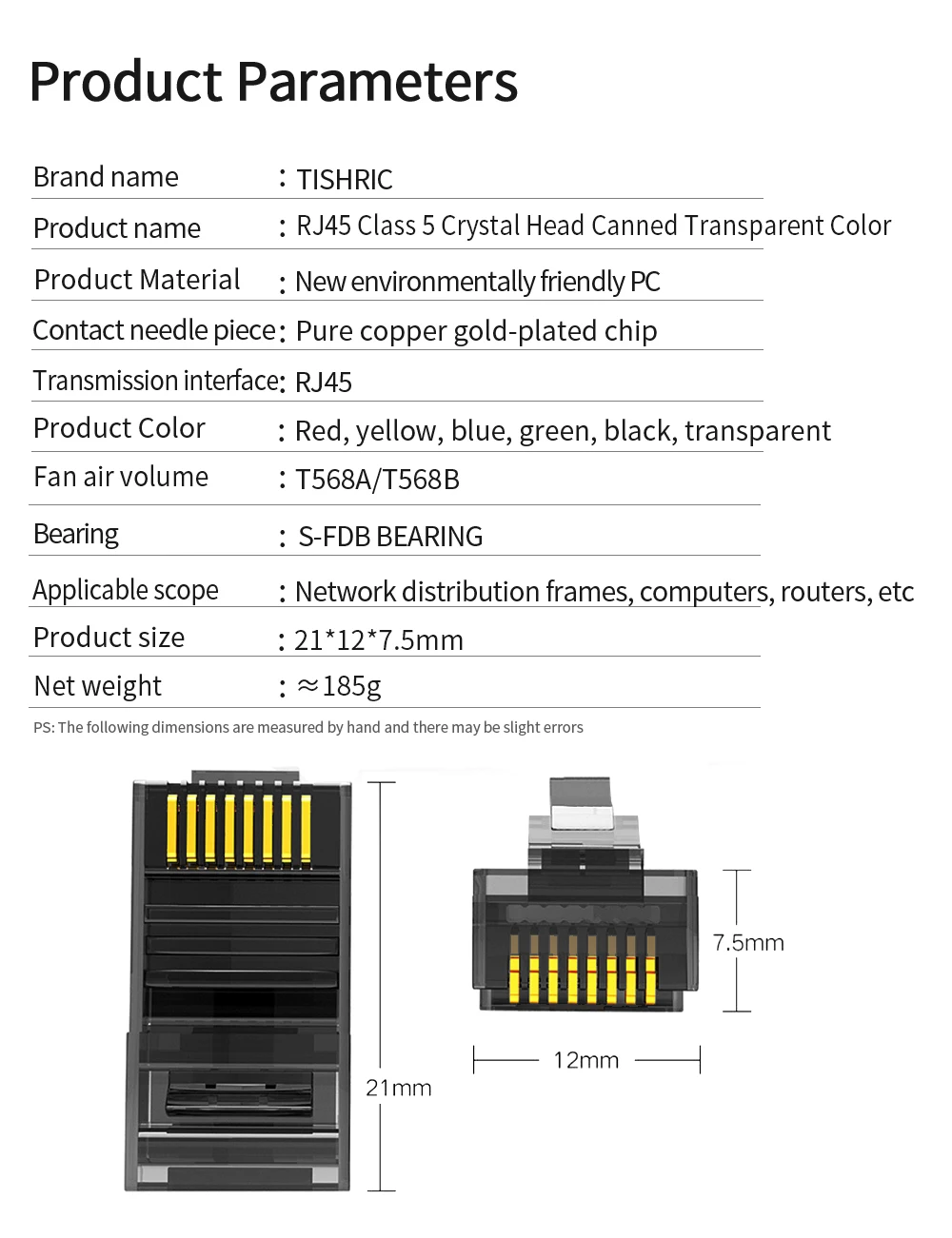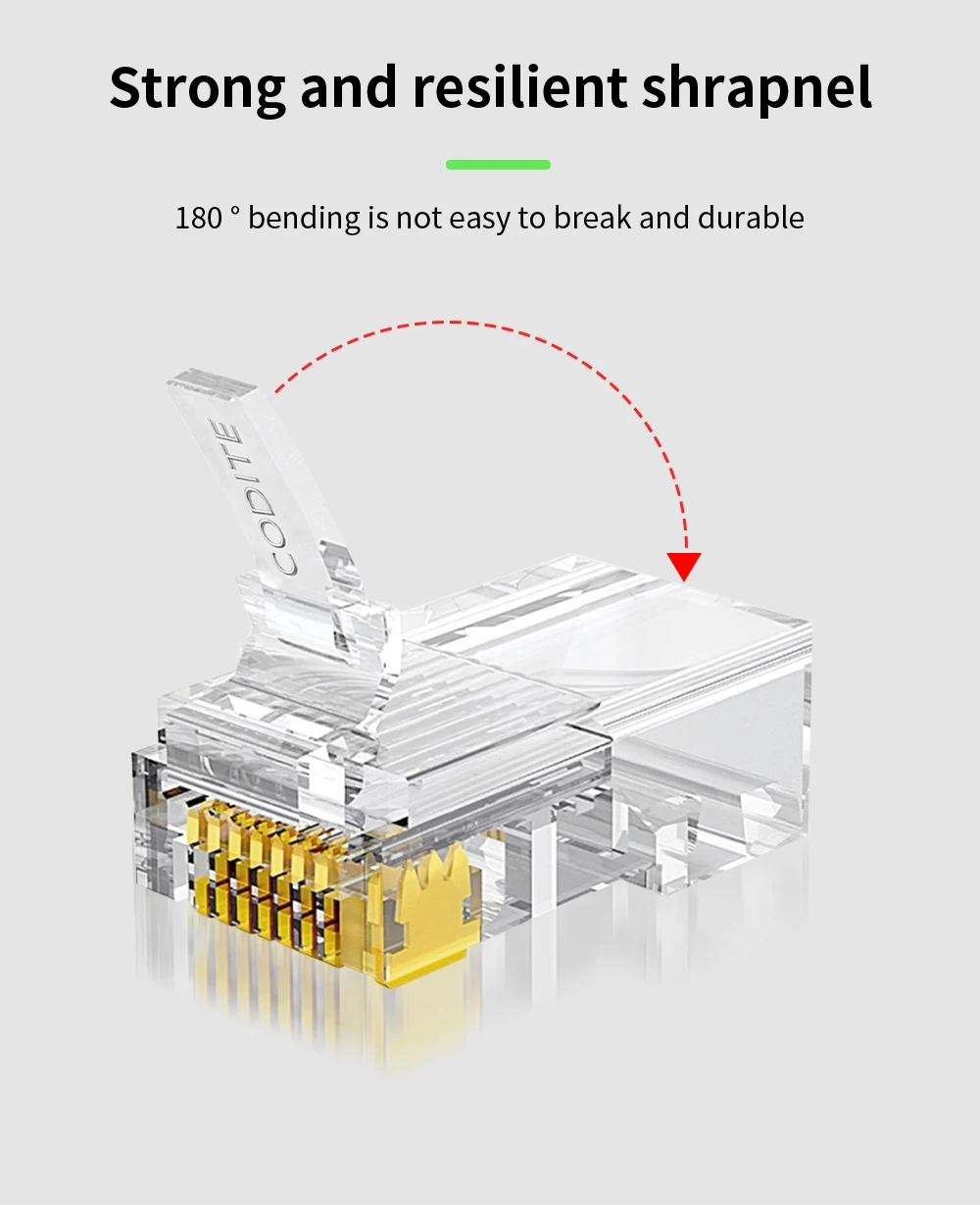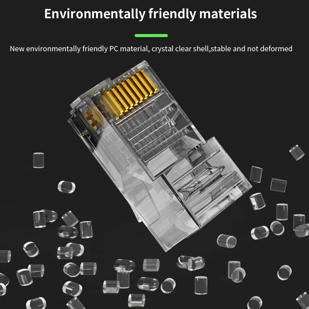 Comprar TISHRIC 100PCS RJ45 Ethernet Cables Module Plug Network Connector RJ-45 Crystal Heads Cat5 Transparent Cat5e Gold Plated Cable
