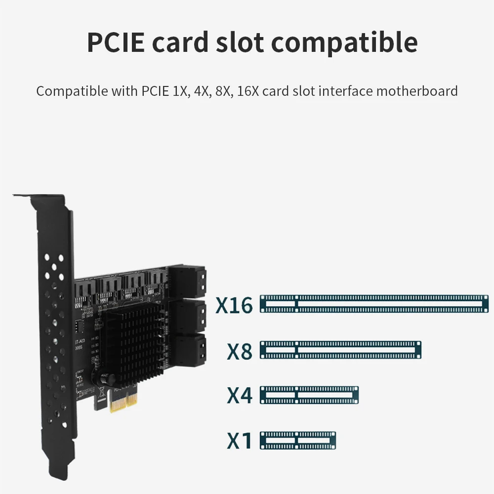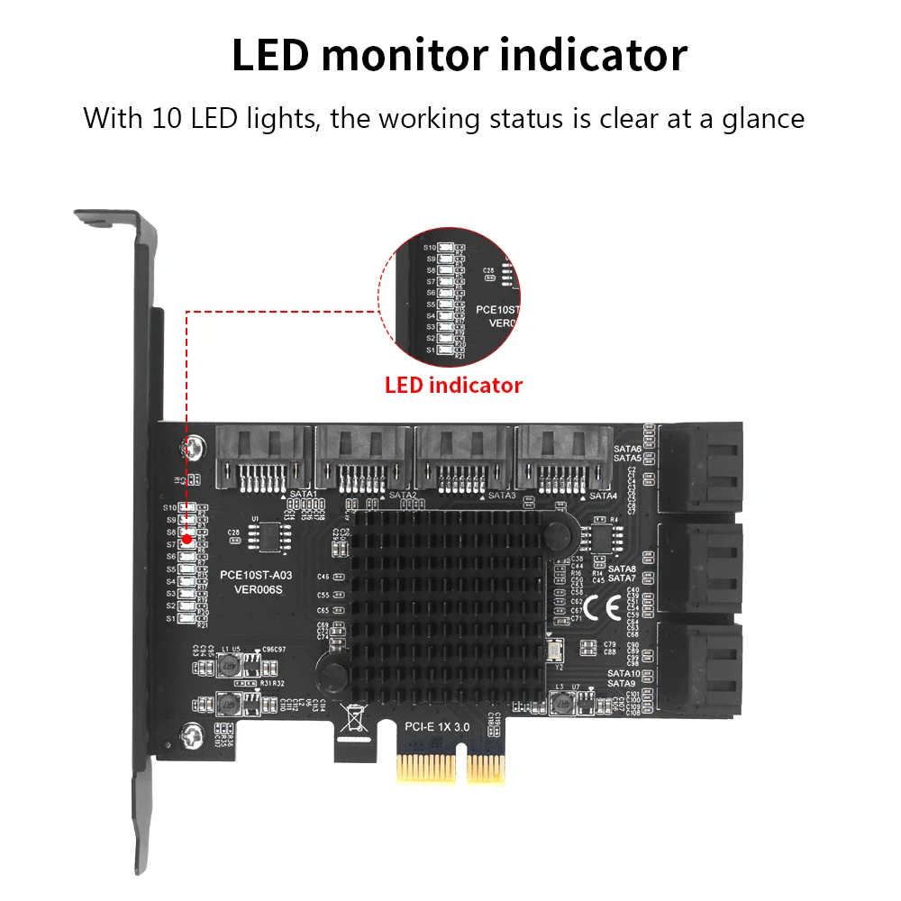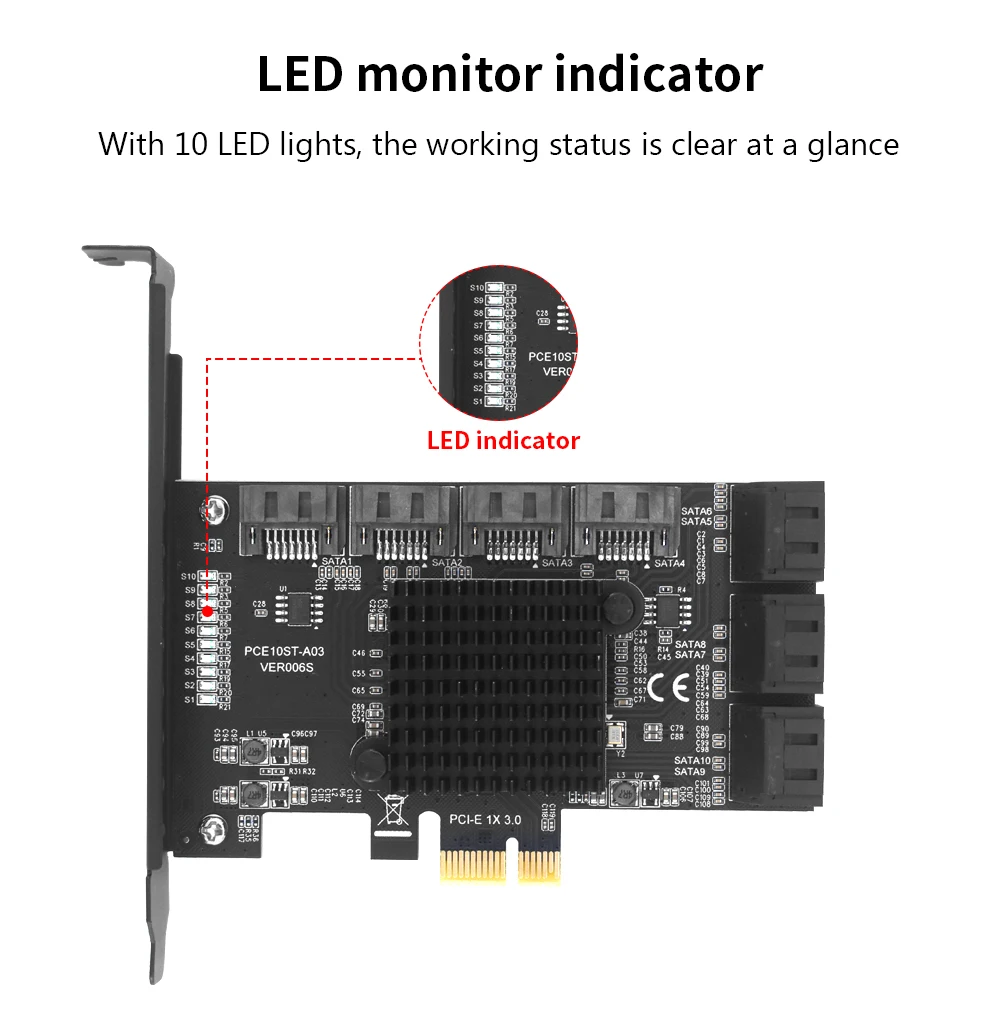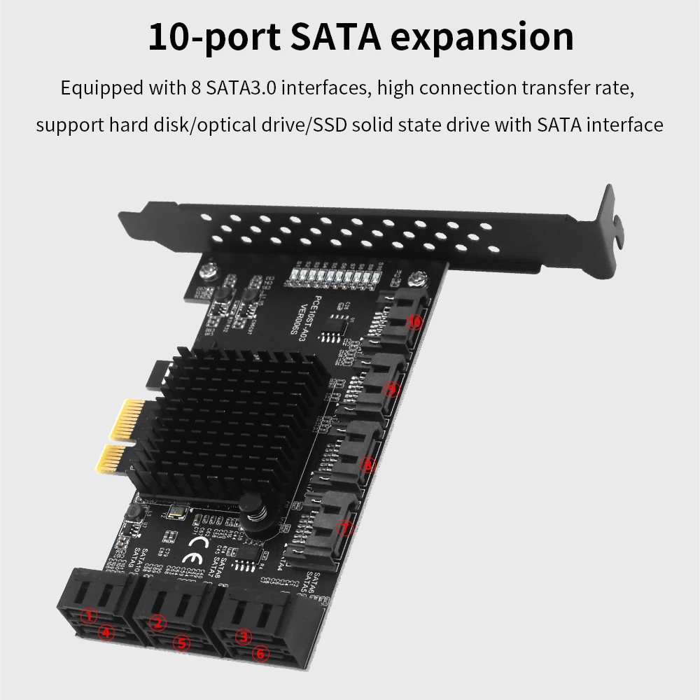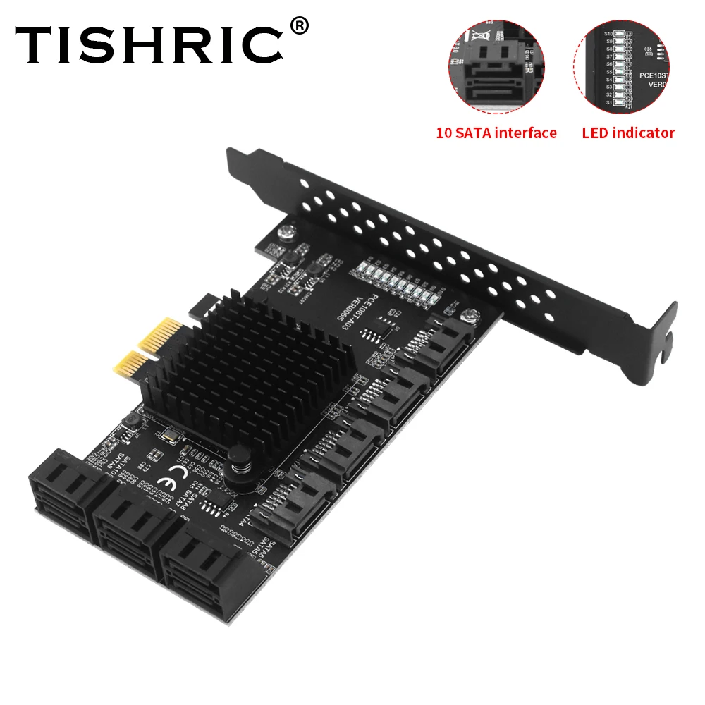 Comprar TISHRIC-adaptador ASM1166 SATA PCIE 1X a 10 puertos SATA 3,0, convertidor de tarjeta de expansión, extensor de Cable de tarjeta de vídeo