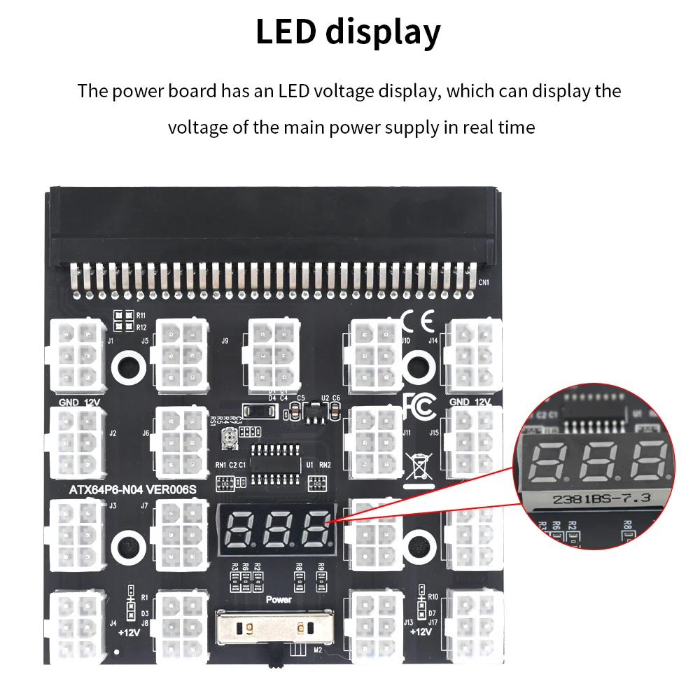 3: pantalla LED. La placa de alimentación tiene una pantalla de voltaje LED, que puede mostrar el voltaje de la fuente de alimentación principal en tiempo real