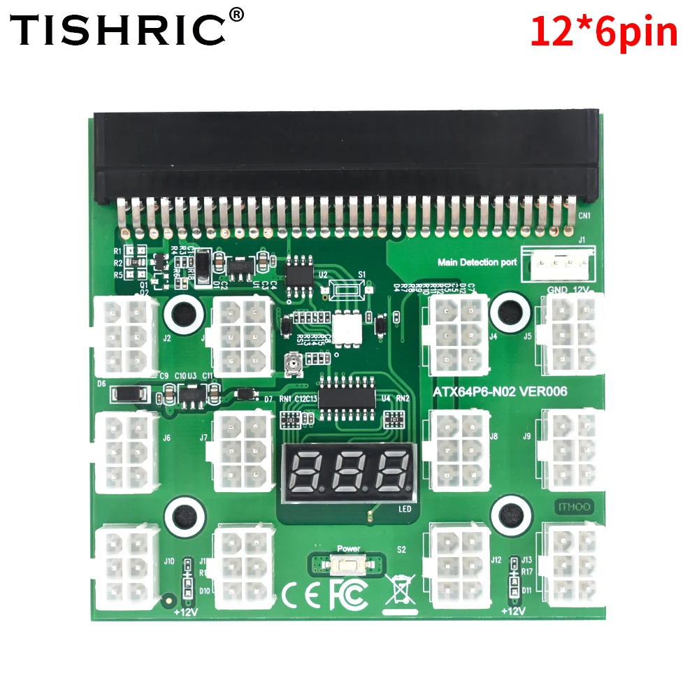 5/10 piezas tishic 12*6/17 * 6pin adaptador de potencia conversión Breakout Board GPU PSU módulo de energía Tarjeta de conversión de servidor para minería BTC