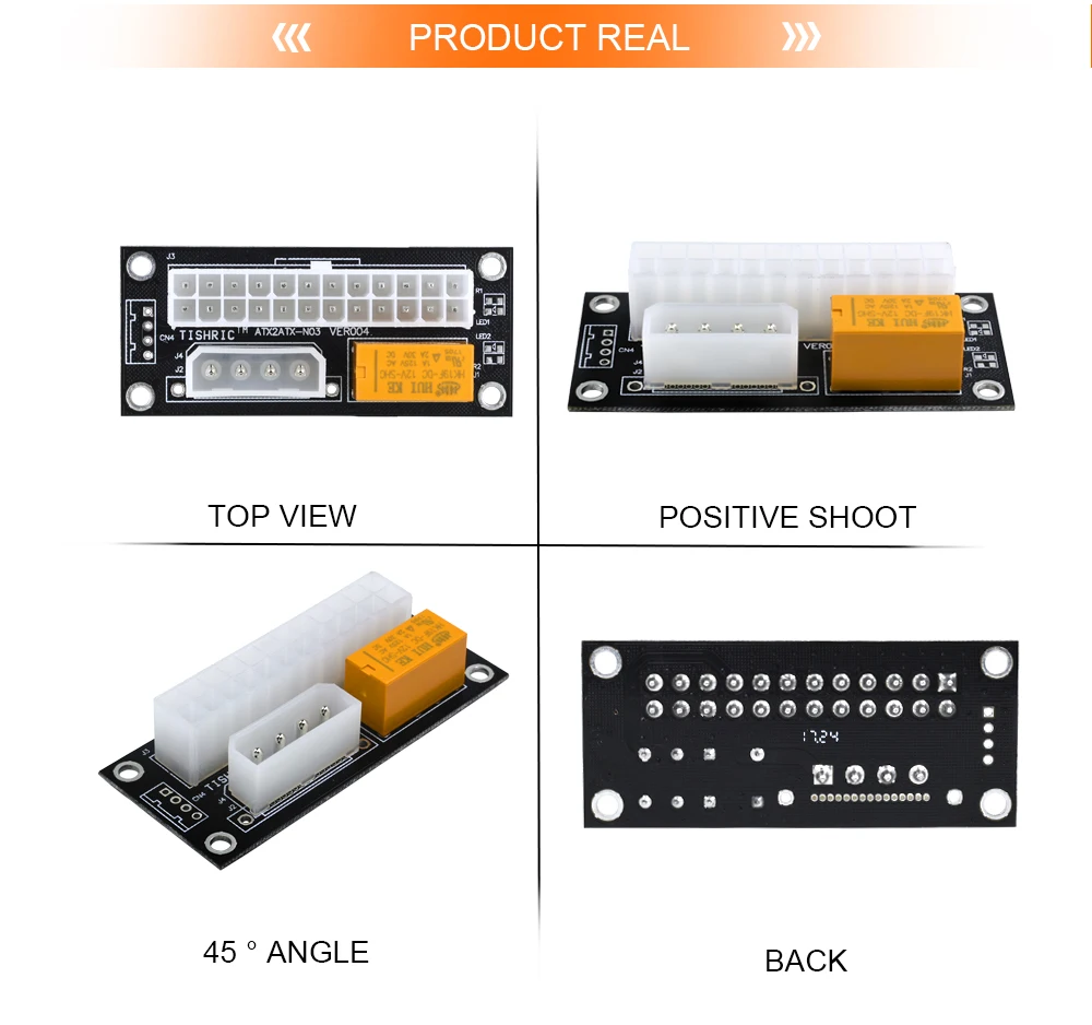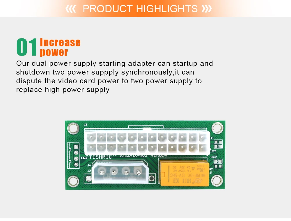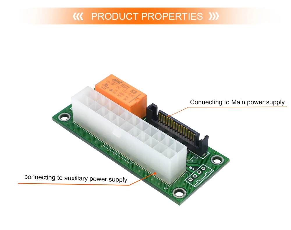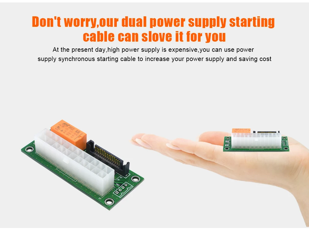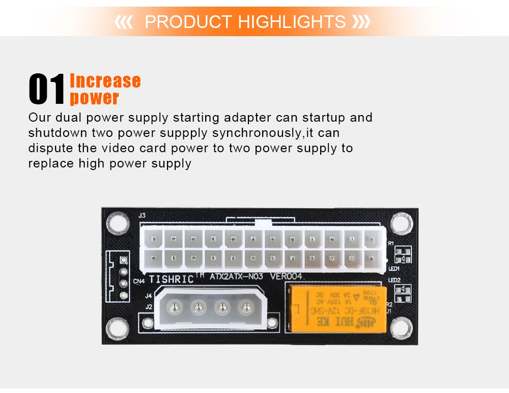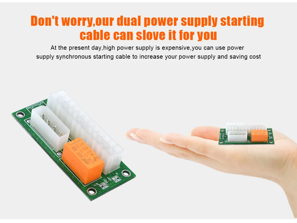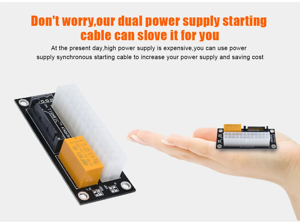 Comprar TISHRIC adaptador de sincronización de fuente de alimentación PSU Dual, ADD2PSU ATX, 24 pines a 4 pines/SATA, Cable extensor Molex, tarjeta elevadora para tarjeta gráfica