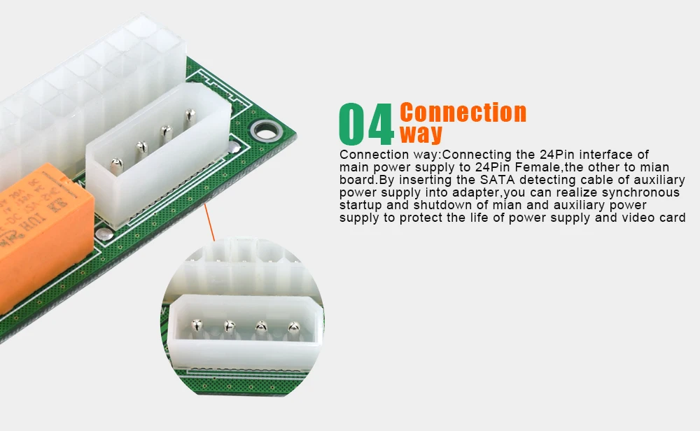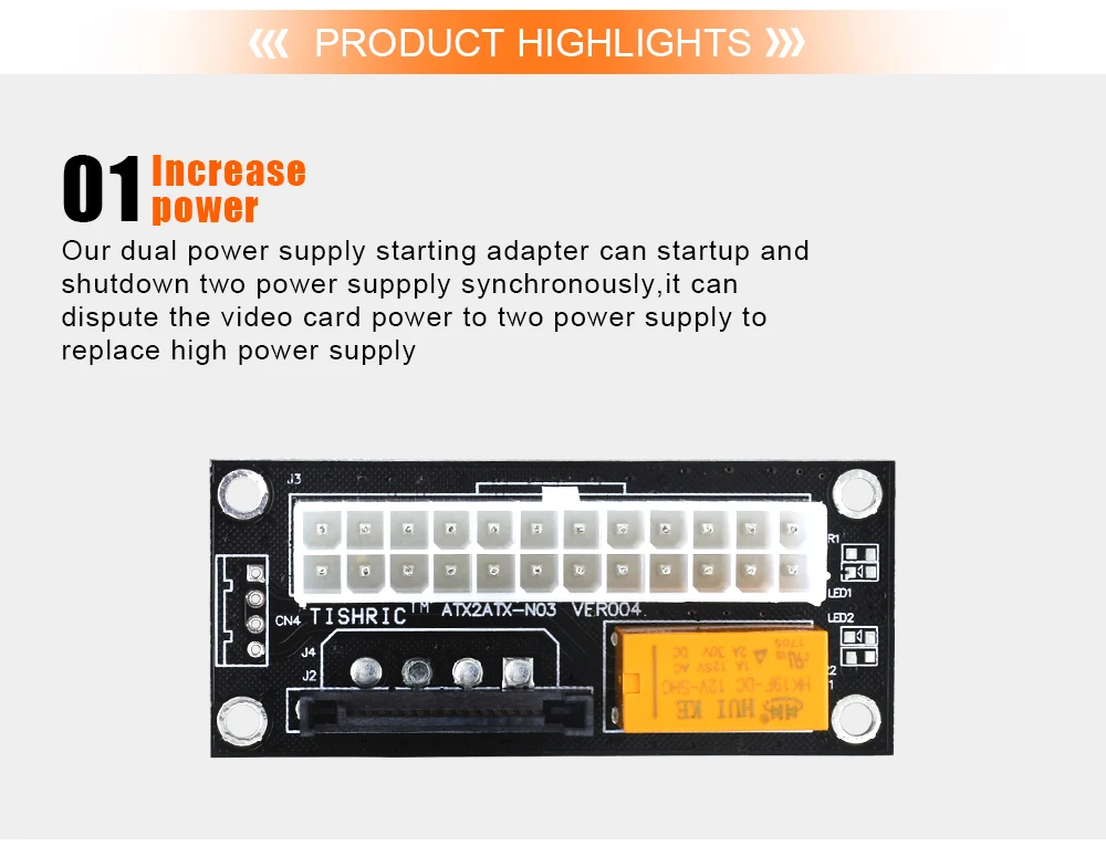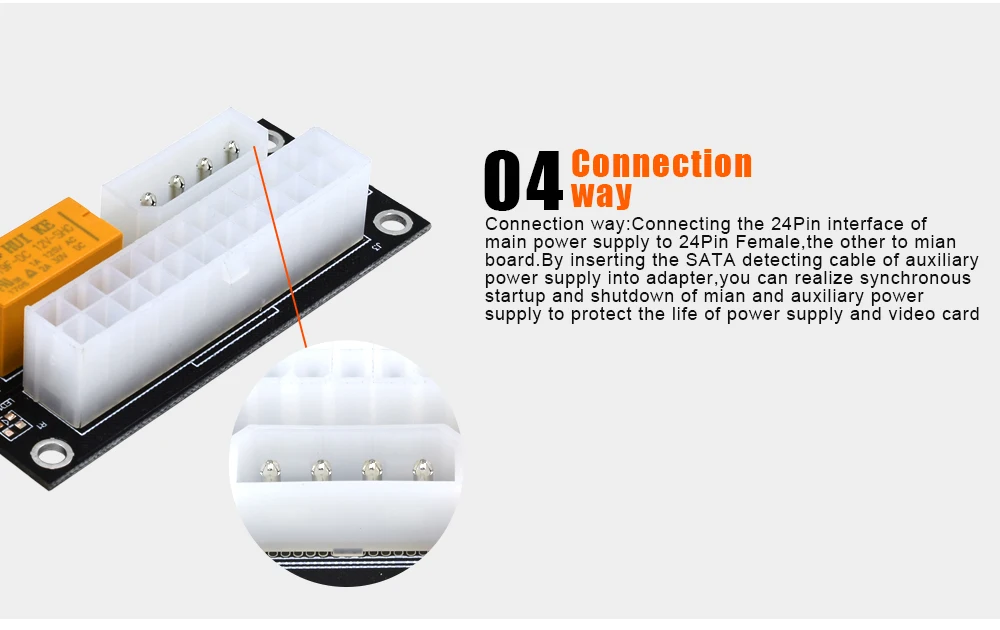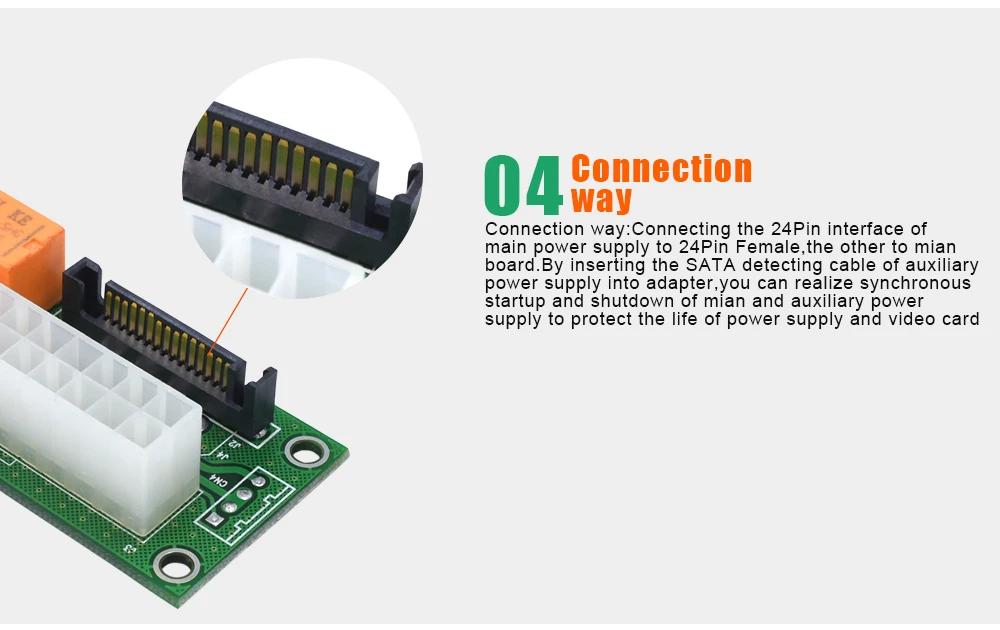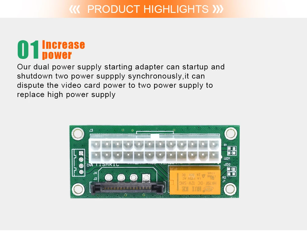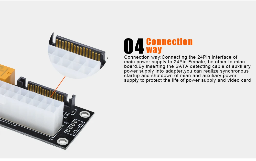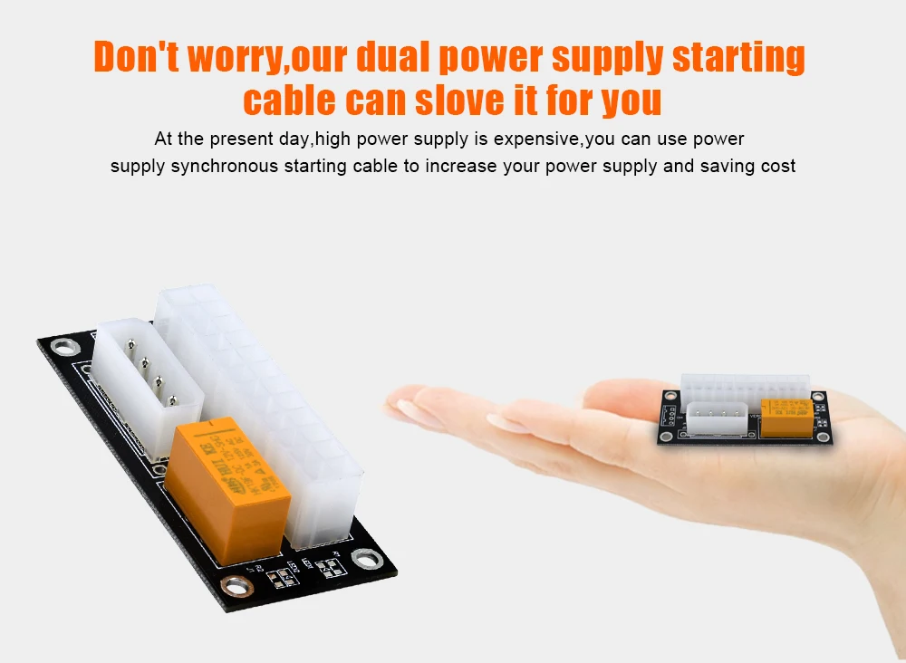 Comprar TISHRIC adaptador de sincronización de fuente de alimentación PSU Dual, ADD2PSU ATX, 24 pines a 4 pines/SATA, Cable extensor Molex, tarjeta elevadora para tarjeta gráfica