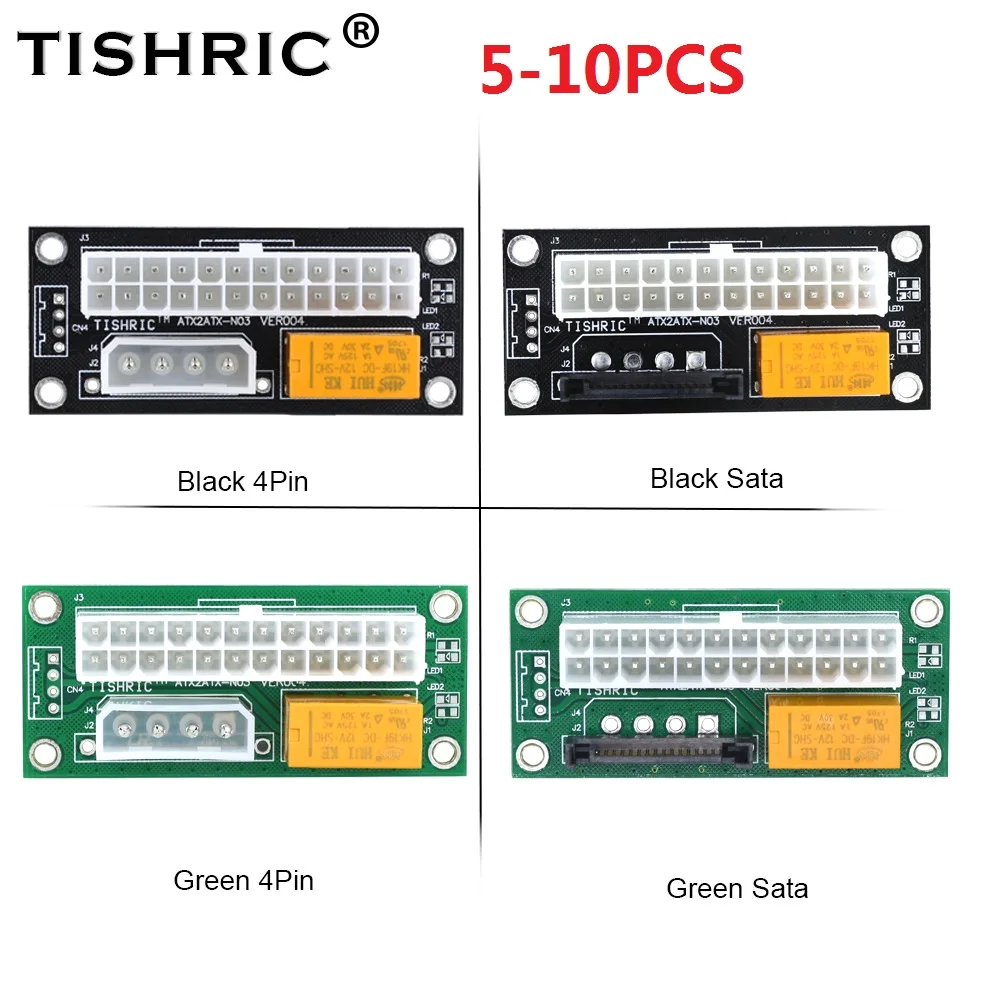 Comprar TISHRIC adaptador de sincronización de fuente de alimentación PSU Dual, ADD2PSU ATX, 24 pines a 4 pines/SATA, Cable extensor Molex, tarjeta elevadora para tarjeta gráfica