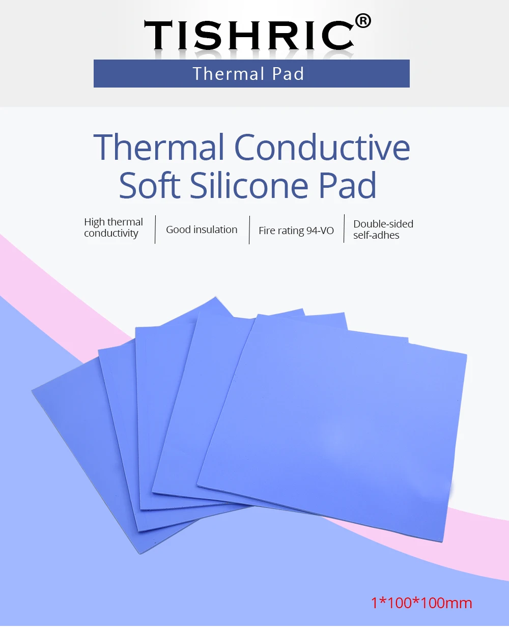 TISHRIC Silicone Thermal Pad 1mm Adhesive GPU CPU Pc Fan Cooler Heatsink Heat Sink Grease Paste Radiator Cooling Conductive Pads