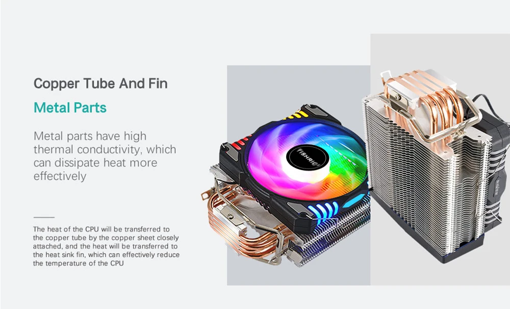 TISHRIC CPU Cooler ARGB Fan 120mm Air Cooler 4Pin PWM 4 Heat Pipe Cooling Intel LGA2011 1700 1200 115X AMD AM4 Processor Cooler
