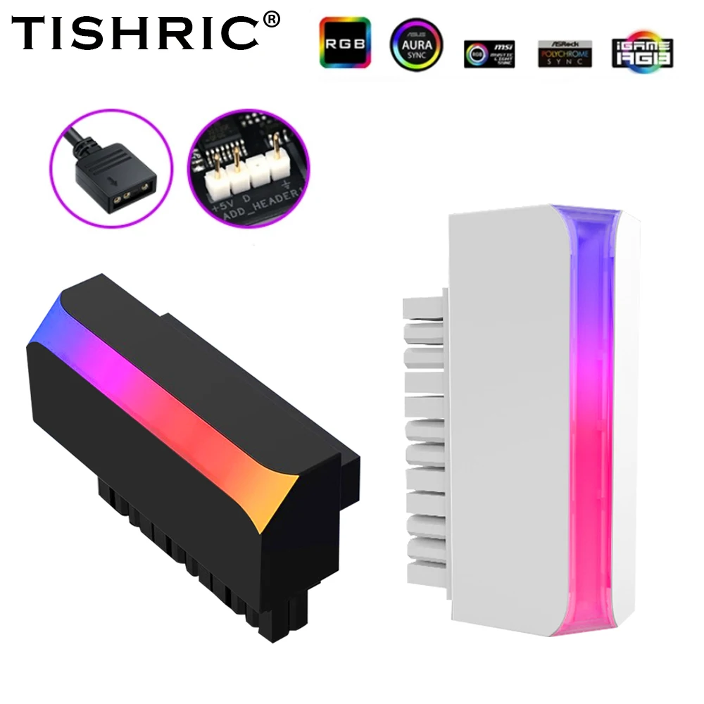 TISHRIC ATX 24 pines a 90 grados 5V ARGB adaptador de enchufe placa base fuente de alimentación conector Plug and Play accesorio de montaje