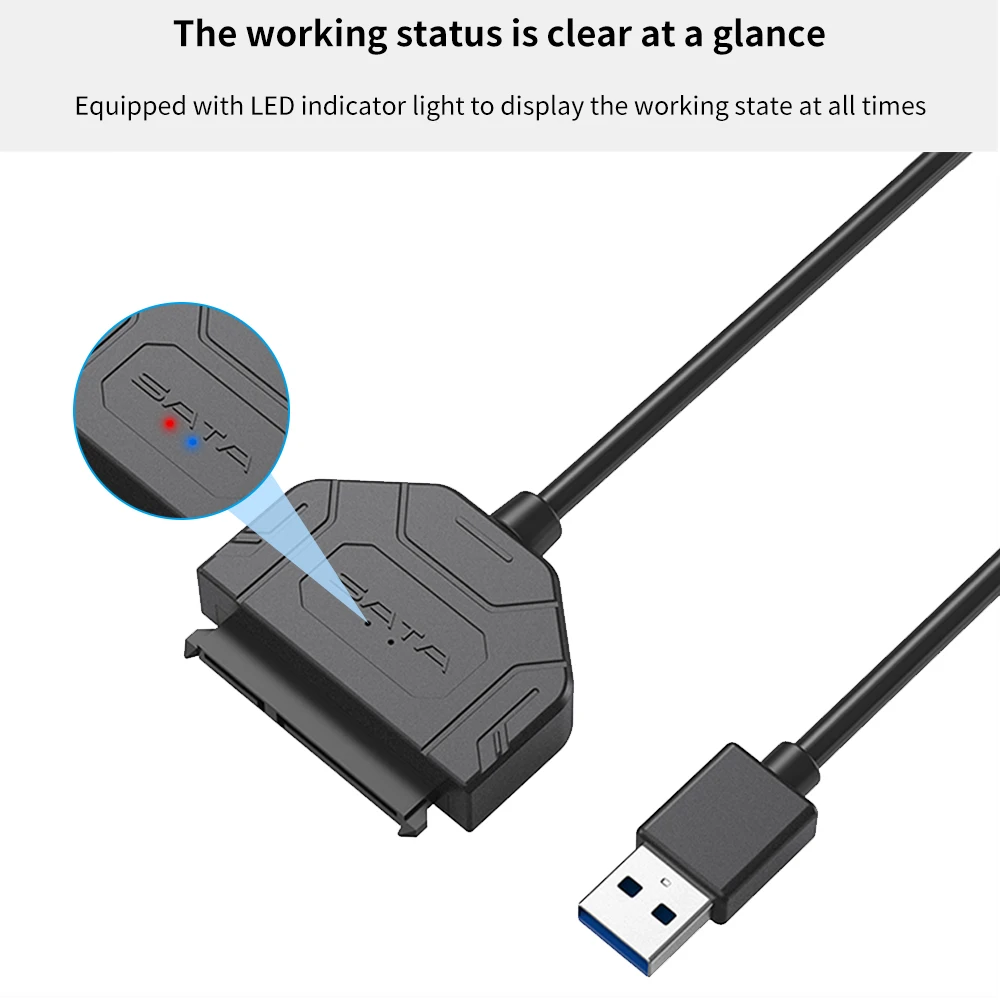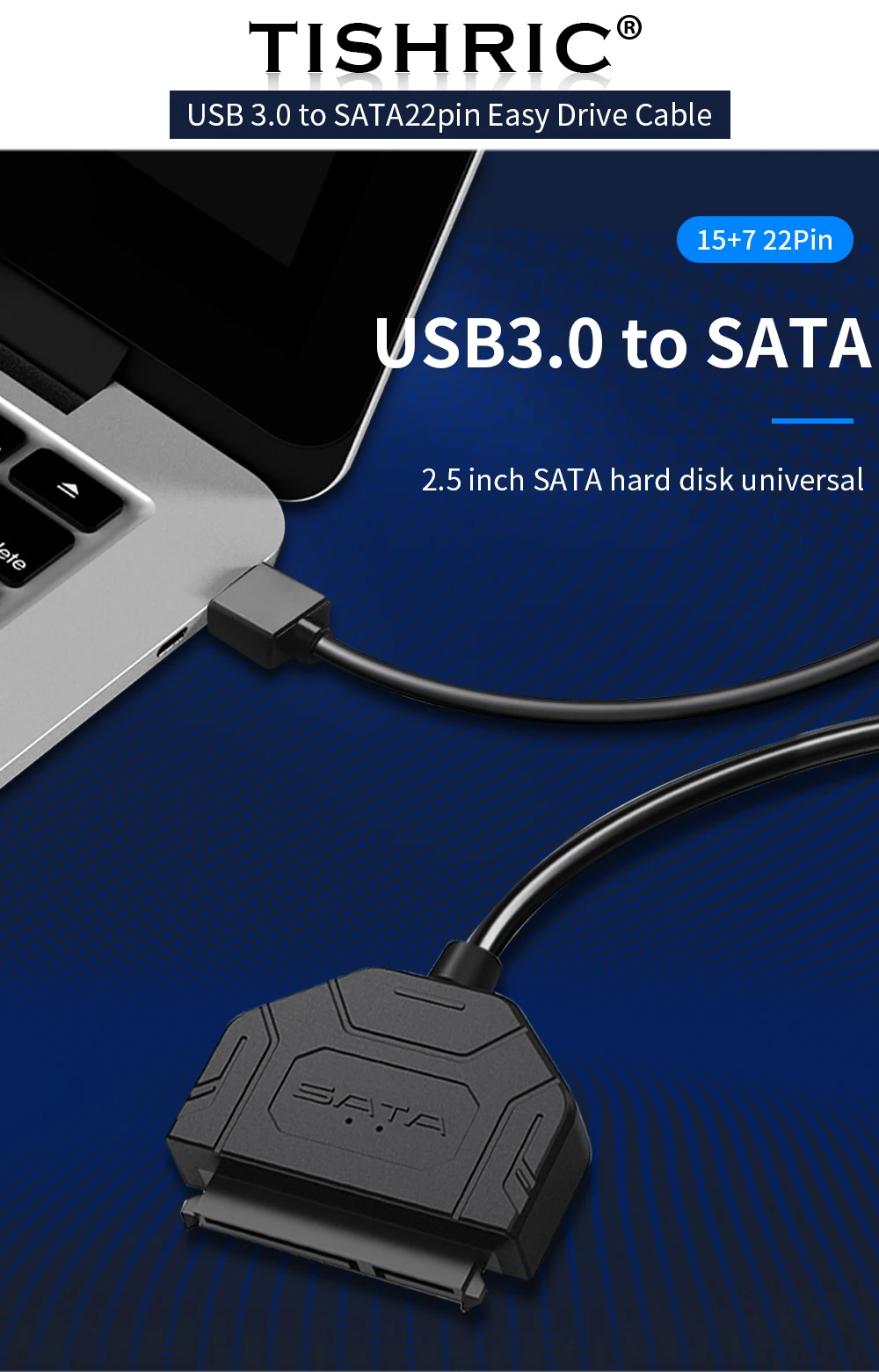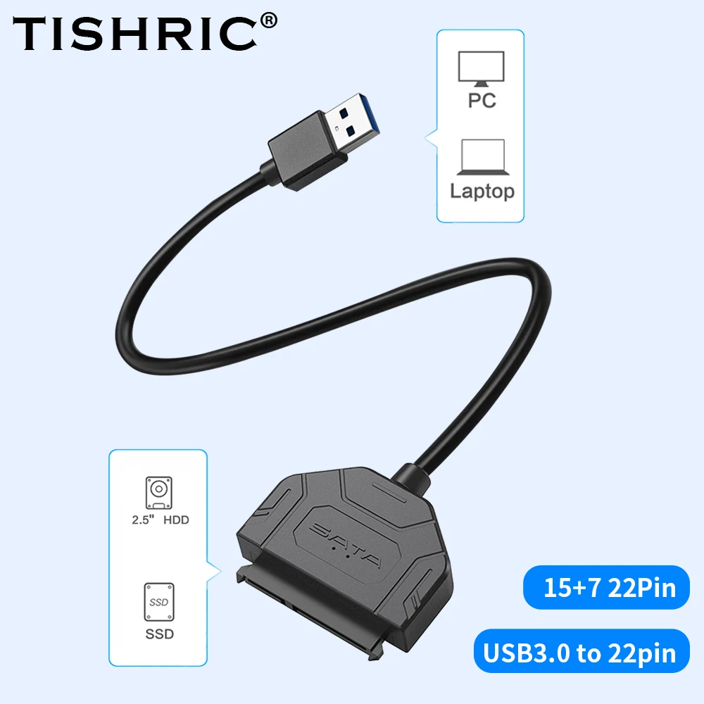 Comprar TISHRIC-Cable de disco duro externo USB 3,0 a SATA de 22 Pines, adaptador compatible con disco duro externo HDD de 3,0 pulgadas, para PC, 2,5