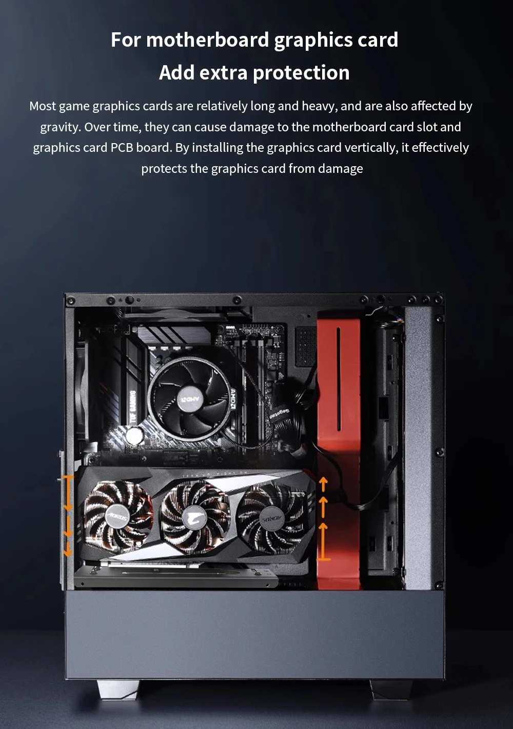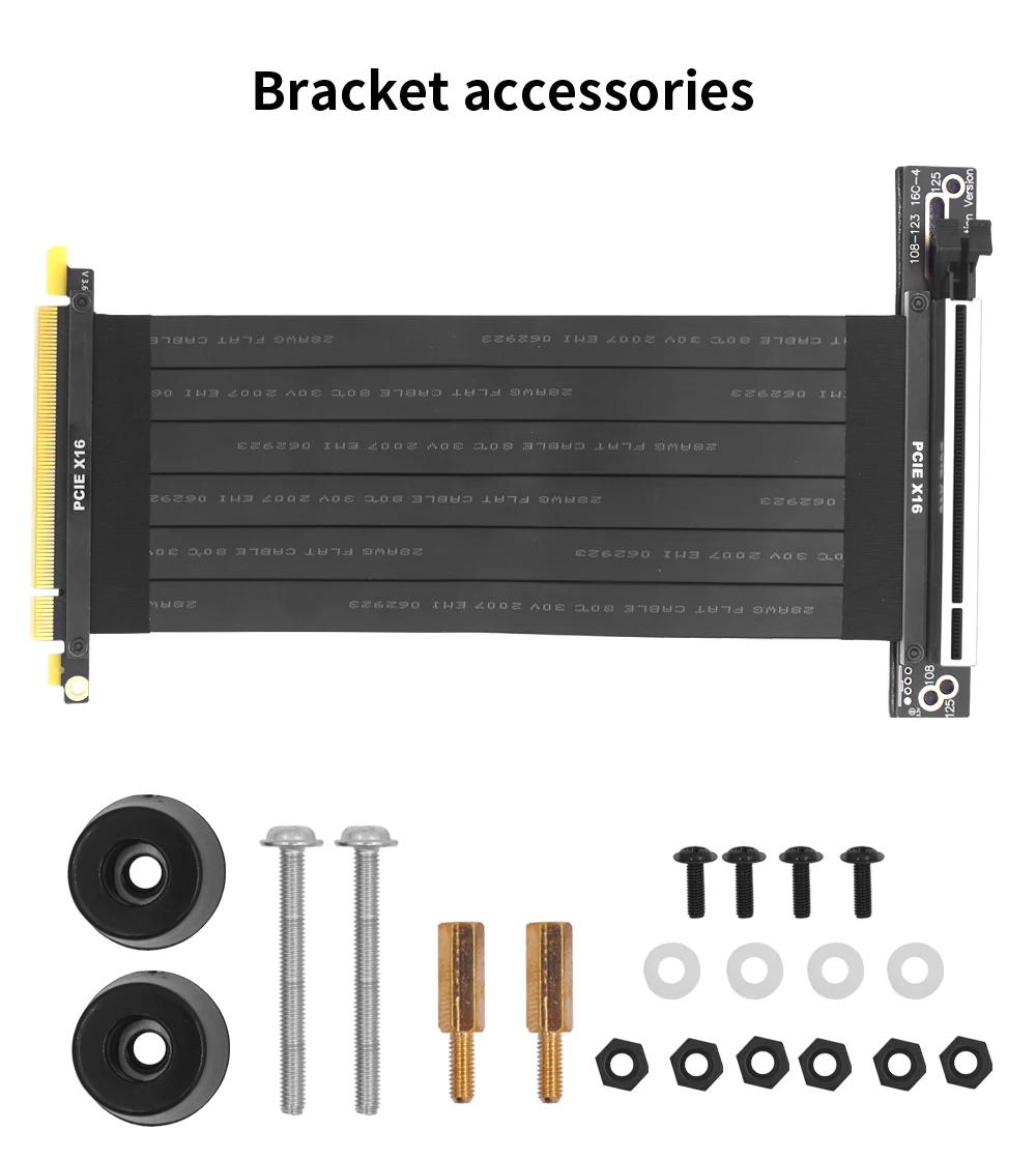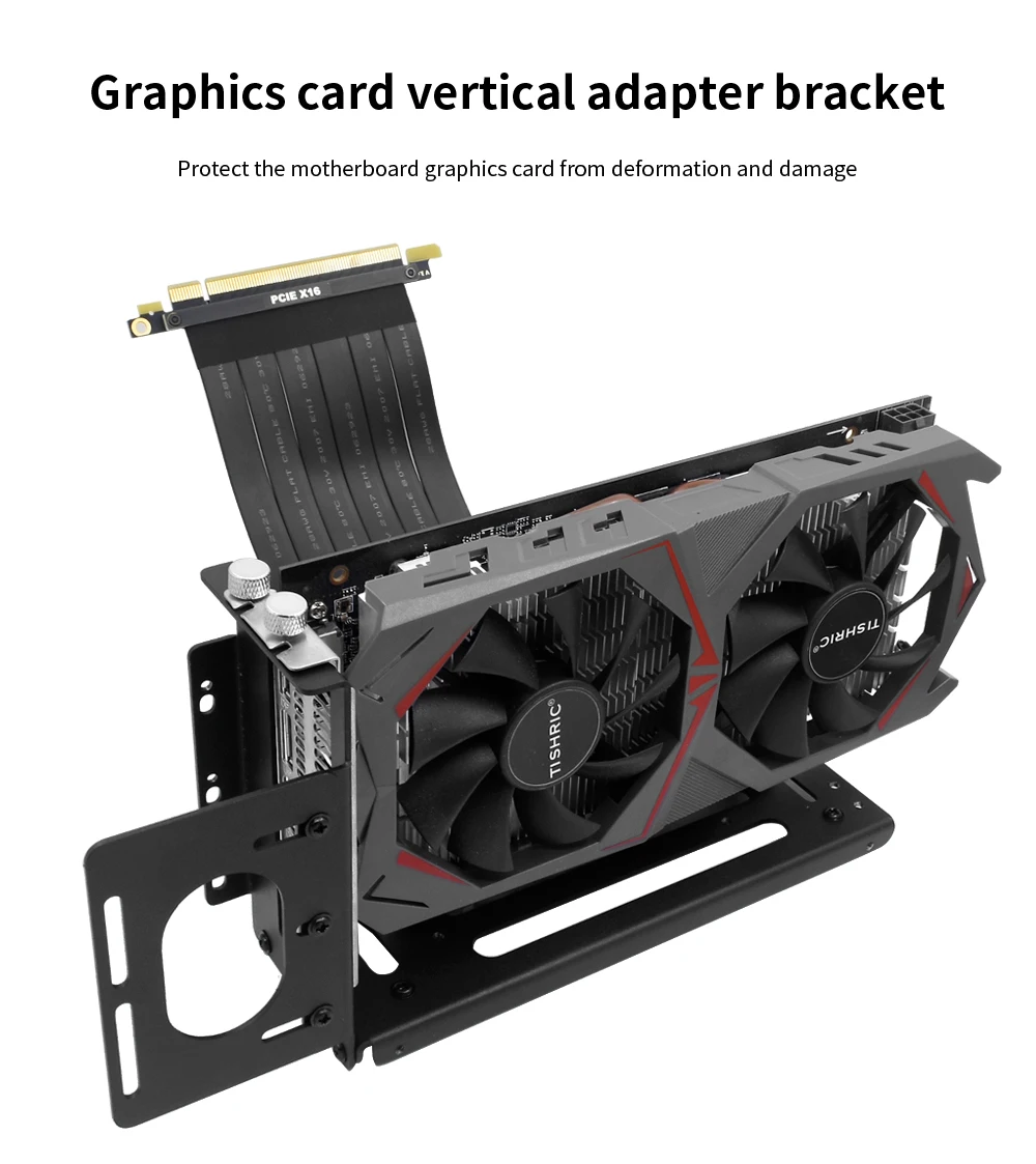 TISHRIC 20CM PCIE 3,0 X16 Riser Cable de extensión de tarjeta de video con blindado + soporte de tarjeta gráfica Vertical negro/blanco para GPU