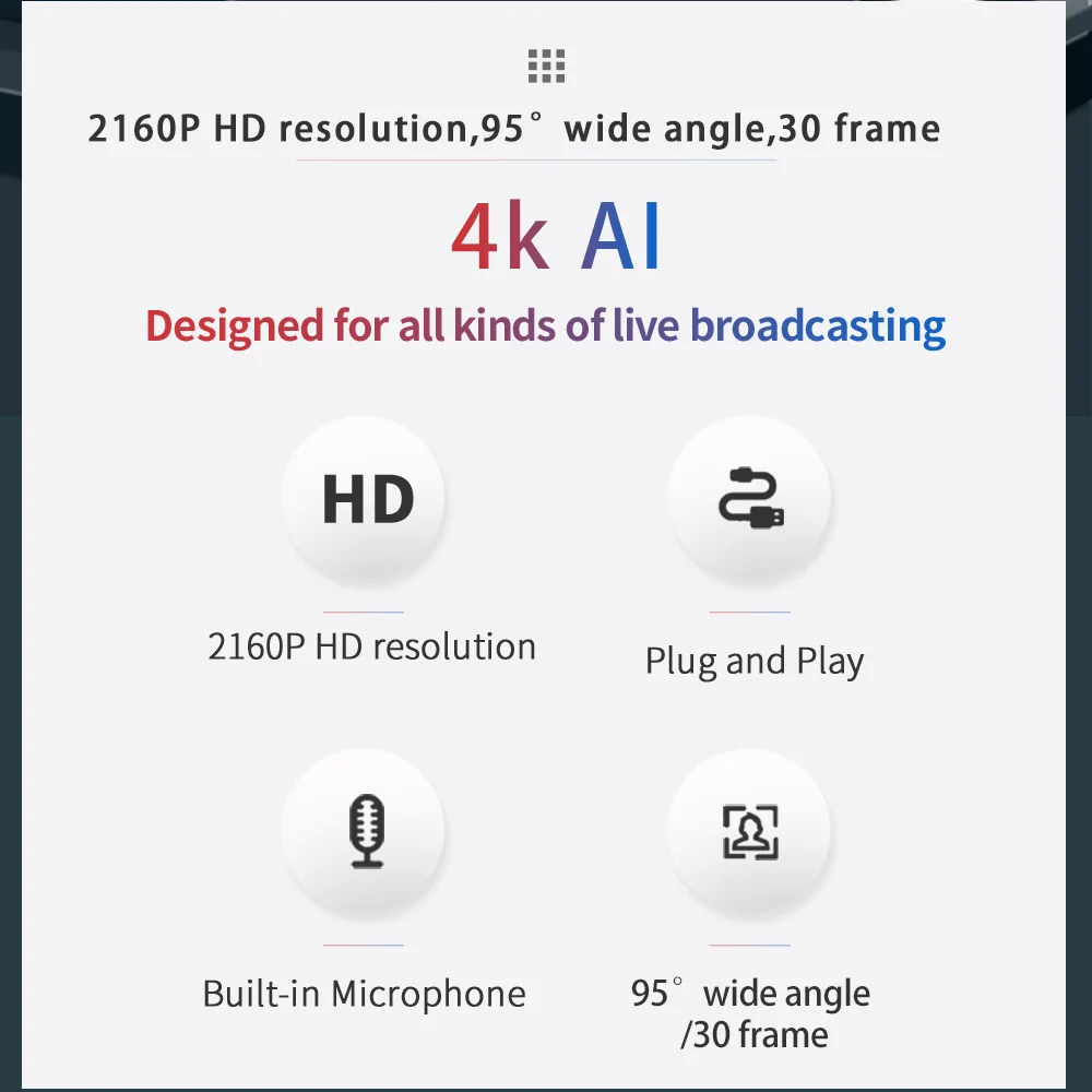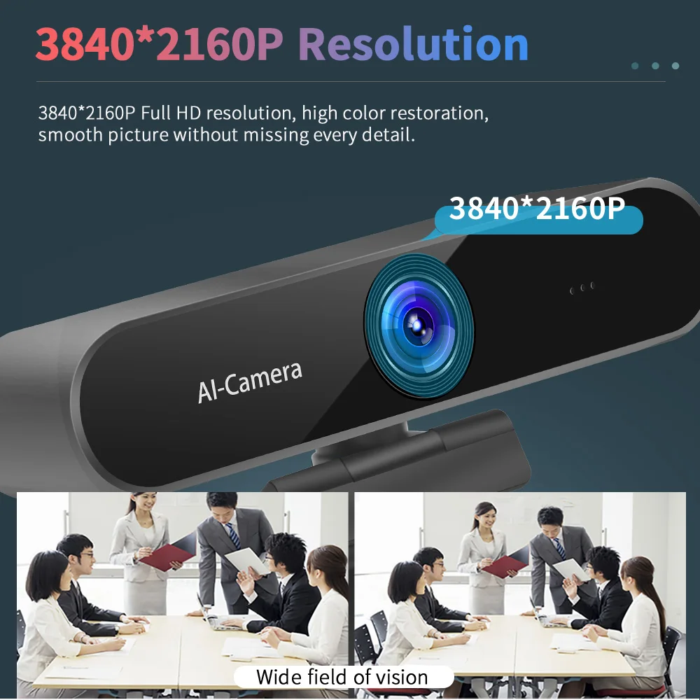Tishic 3840*2160P cámara de ordenador de enfoque automático AI Webcam de seguimiento 4K USB Web Cam HD cámara Web para Vdeo Conferencia Webcast