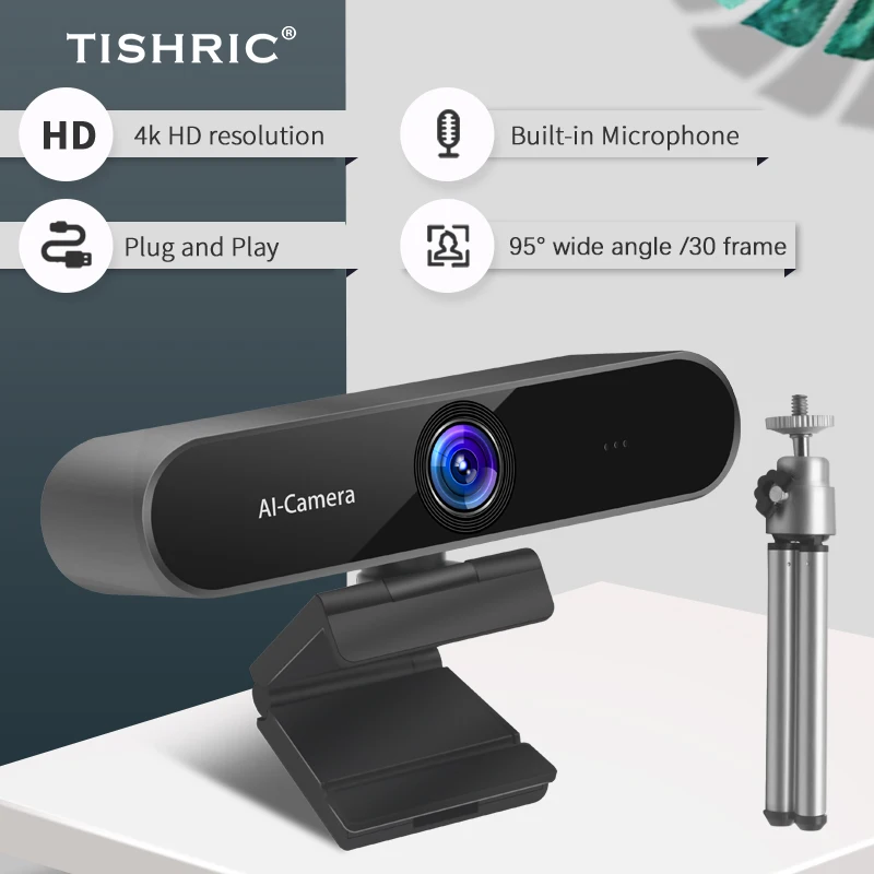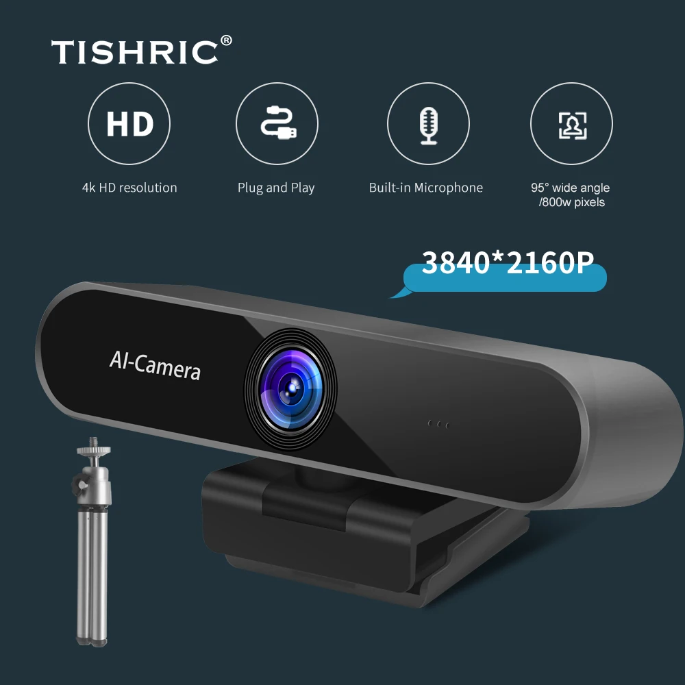 Comprar TISHRIC-cámara Web de 3840x2160P para ordenador, con enfoque automático Webcam, seguimiento IA, 4K, USB, HD, para conferencia Vdeo Webcast