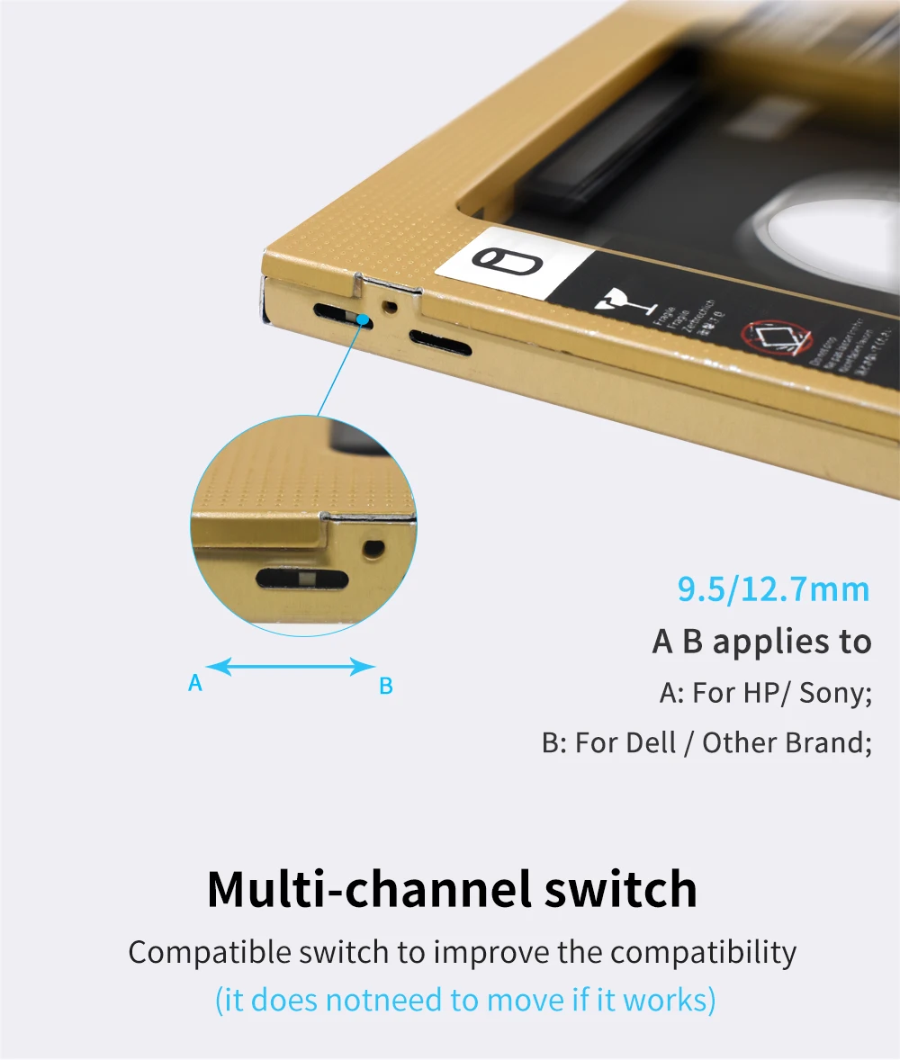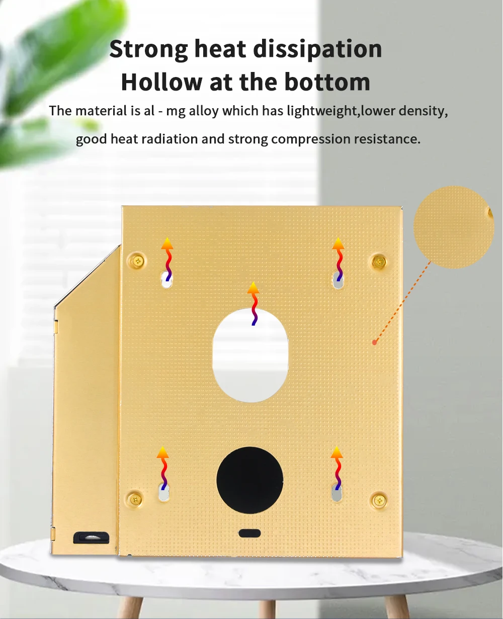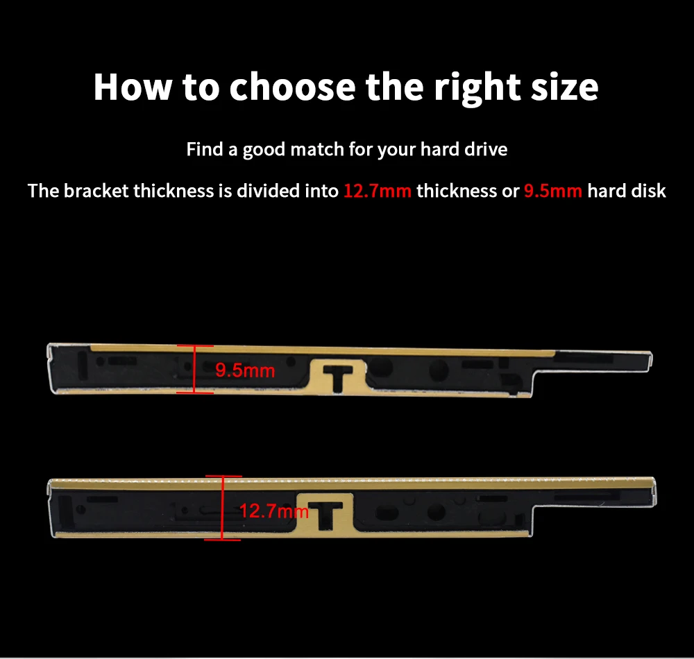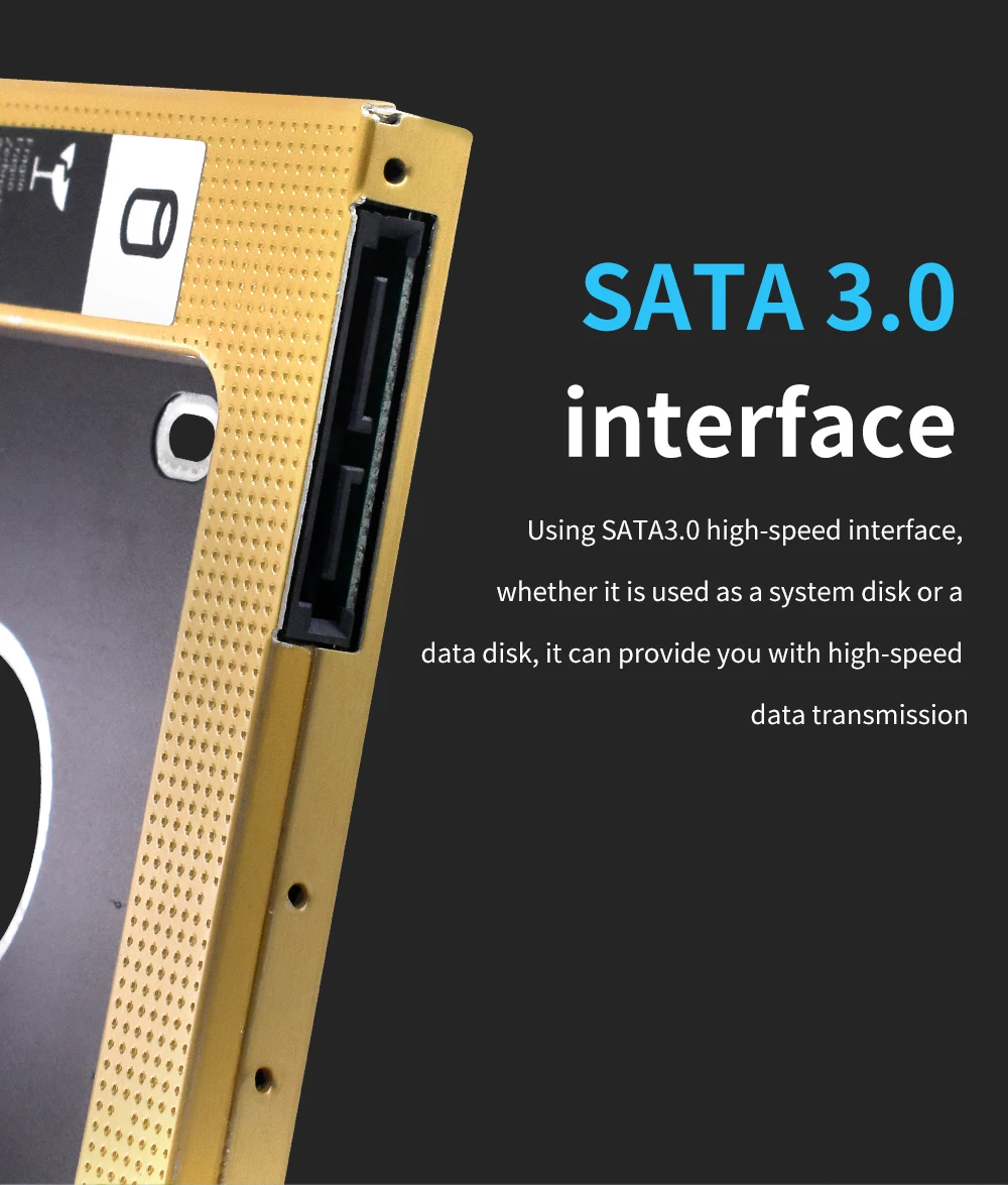 TISHRIC Oro Aluminio 2nd Hdd Caddy 9,5mm 12,7mm Optibay SATA 3,0 2,5 ''SSD DVD Caja de disco duro Adaptador de caja de disco duro