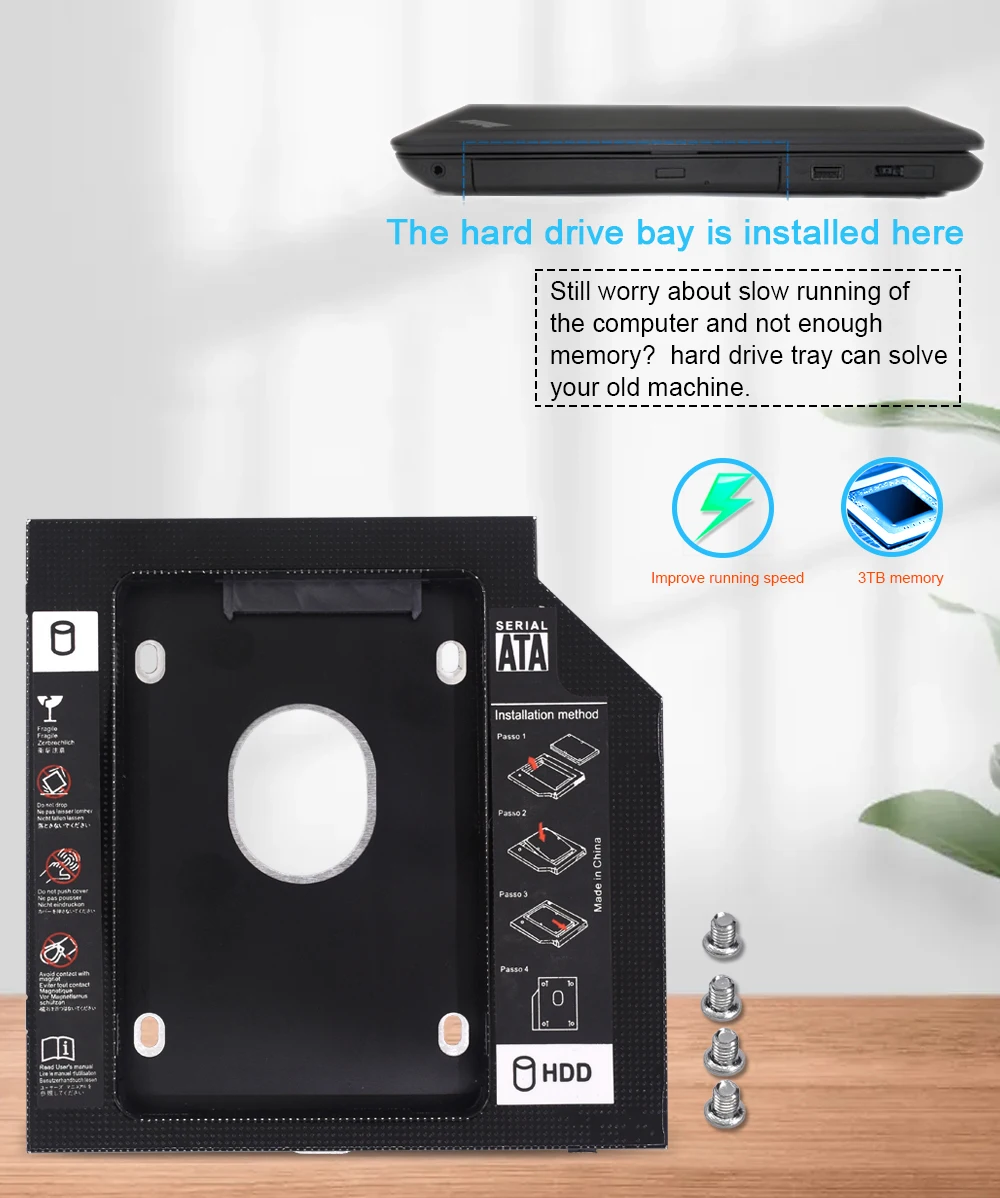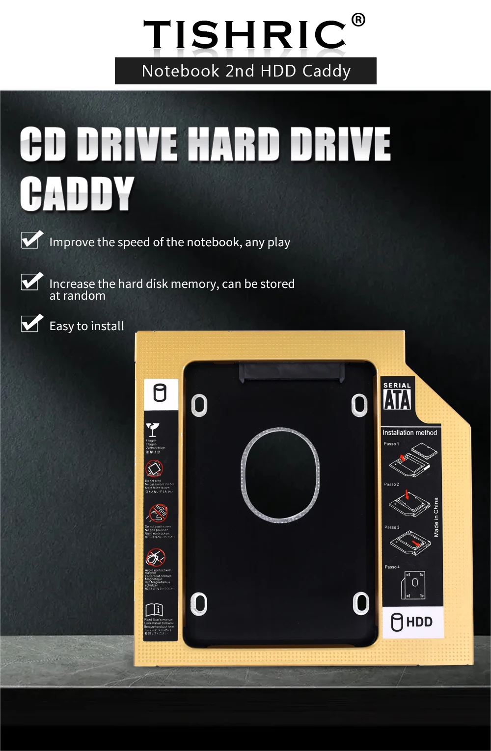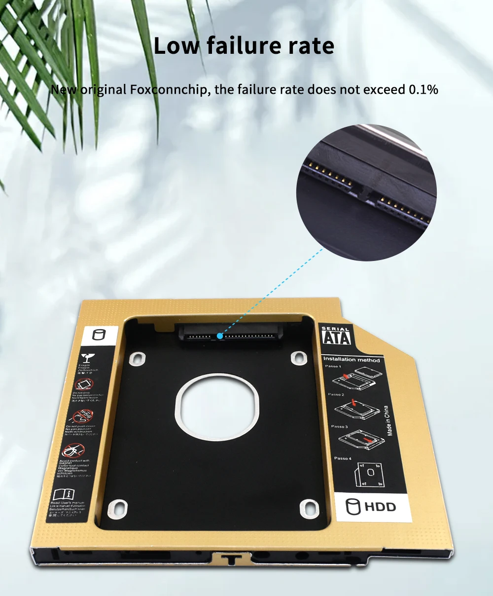 TISHRIC Oro Aluminio 2nd Hdd Caddy 9,5mm 12,7mm Optibay SATA 3,0 2,5 ''SSD DVD Caja de disco duro Adaptador de caja de disco duro