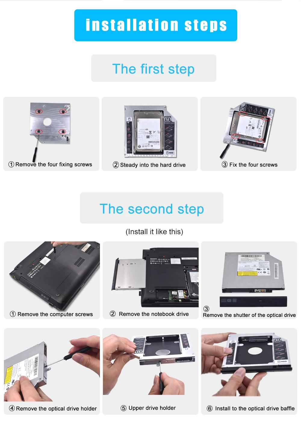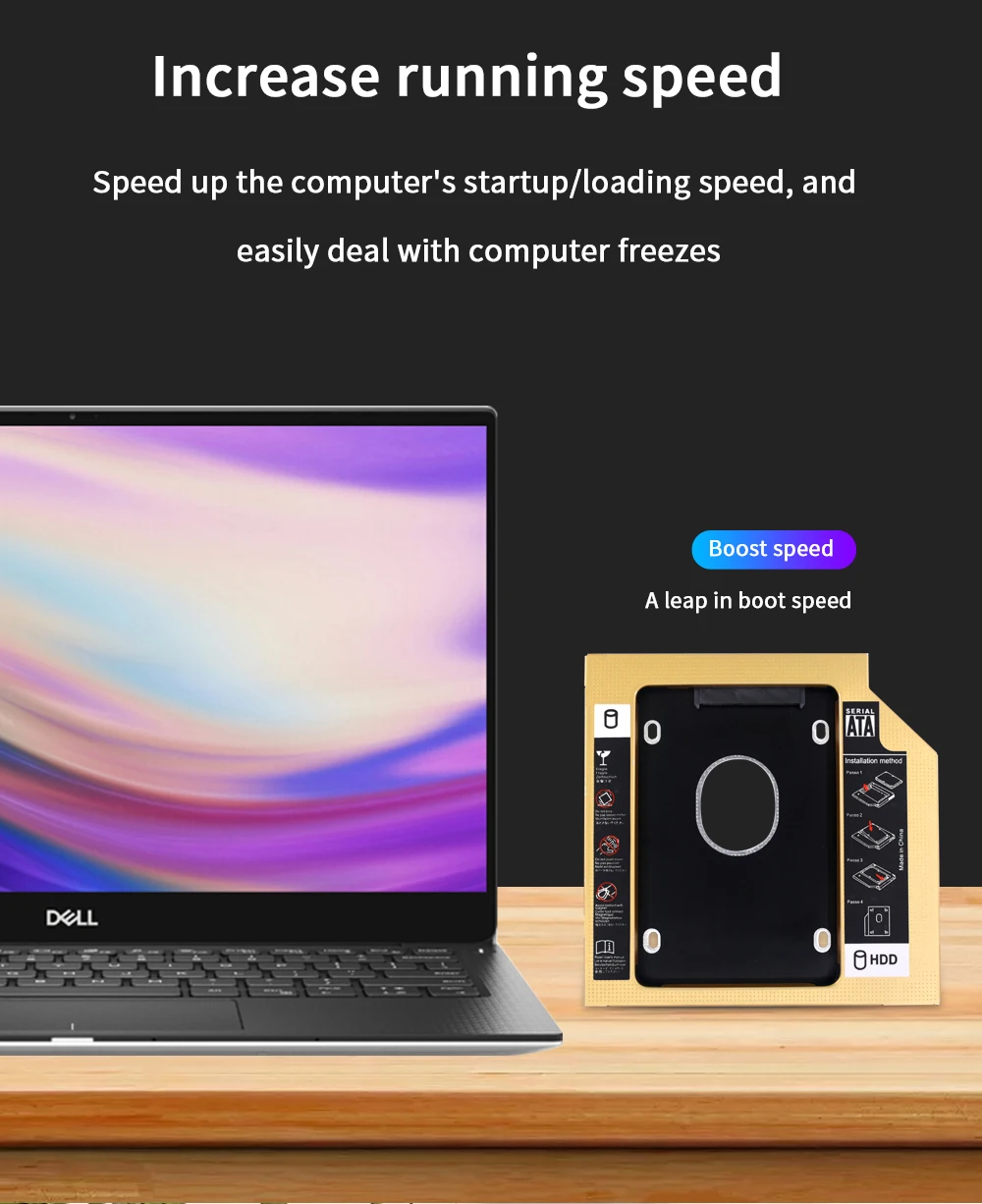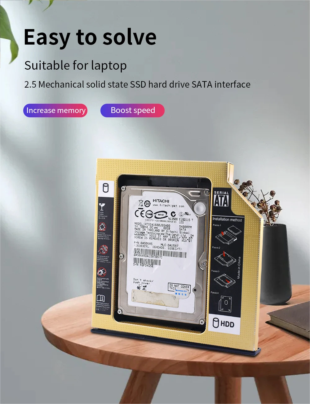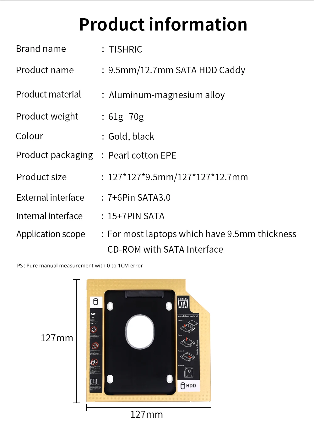 TISHRIC Oro Aluminio 2nd Hdd Caddy 9,5mm 12,7mm Optibay SATA 3,0 2,5 ''SSD DVD Caja de disco duro Adaptador de caja de disco duro