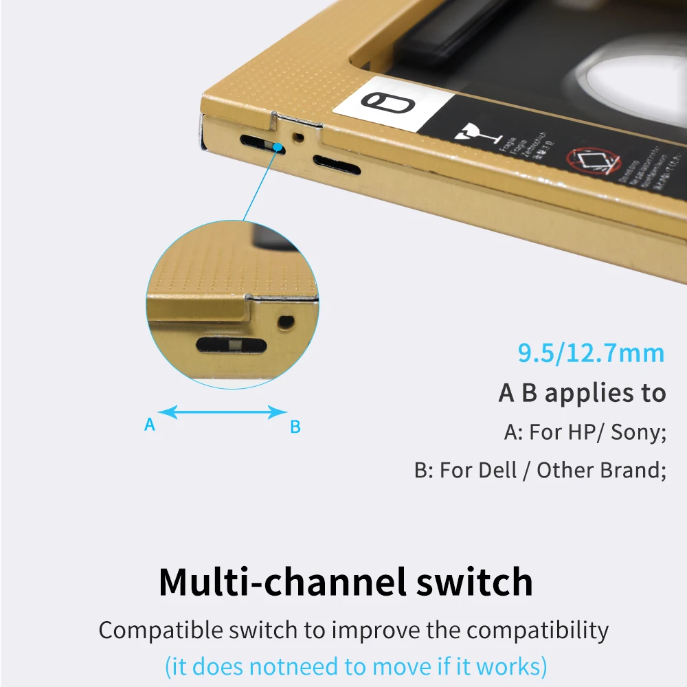 TISHRIC Oro Aluminio 2nd Hdd Caddy 9,5mm 12,7mm Optibay SATA 3,0 2,5 ''SSD DVD Caja de disco duro Adaptador de caja de disco duro