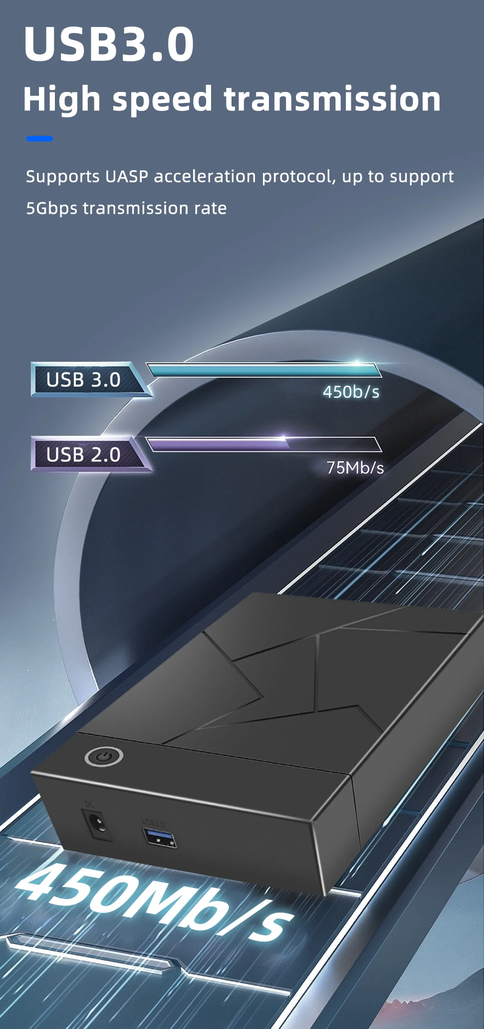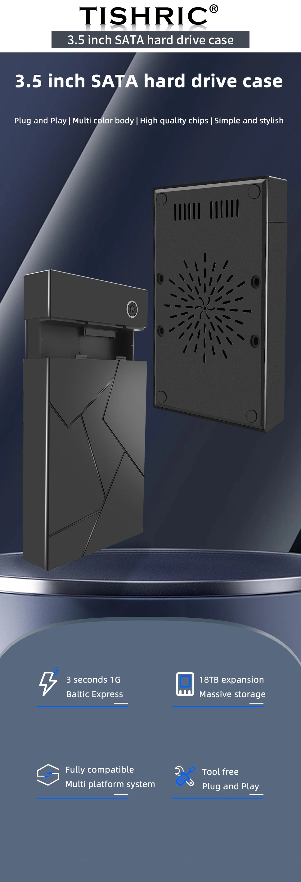 TISHRIC HDD Case 3,5/2,5 SATA a USB 3,0 Adaptador Caja de disco duro externo para disco SSD 3,5 450 Mb/s 18TB HDD Box Case