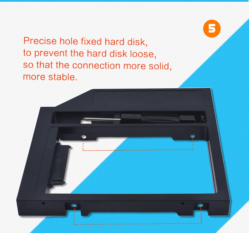 5. El Caddy segundo/Adaptador de disco duro para ofrecerte la máxima flexibilidad de almacenamiento de datos. Con el segundo HDD en tu ordenador,