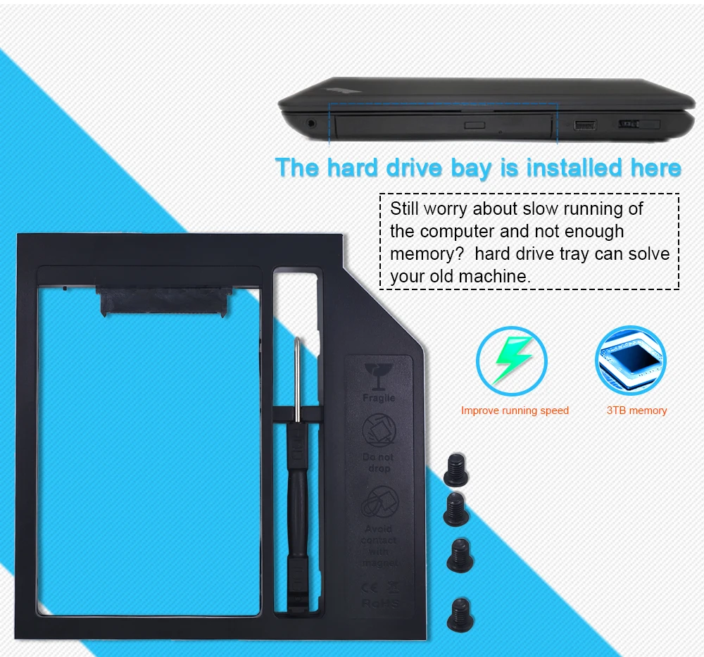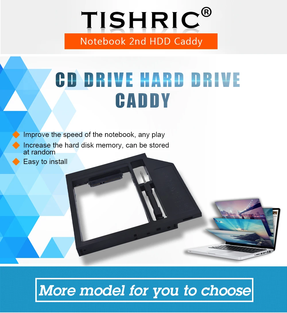 TISHRIC Universal 2nd 2,5 HDD HD SSD carcasa SATA 3,0 Caddy 12,7mm disco duro externo caja adaptador DVD ROM Optibay