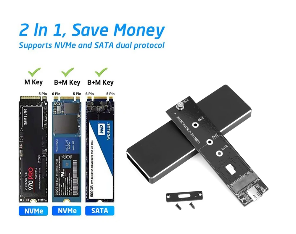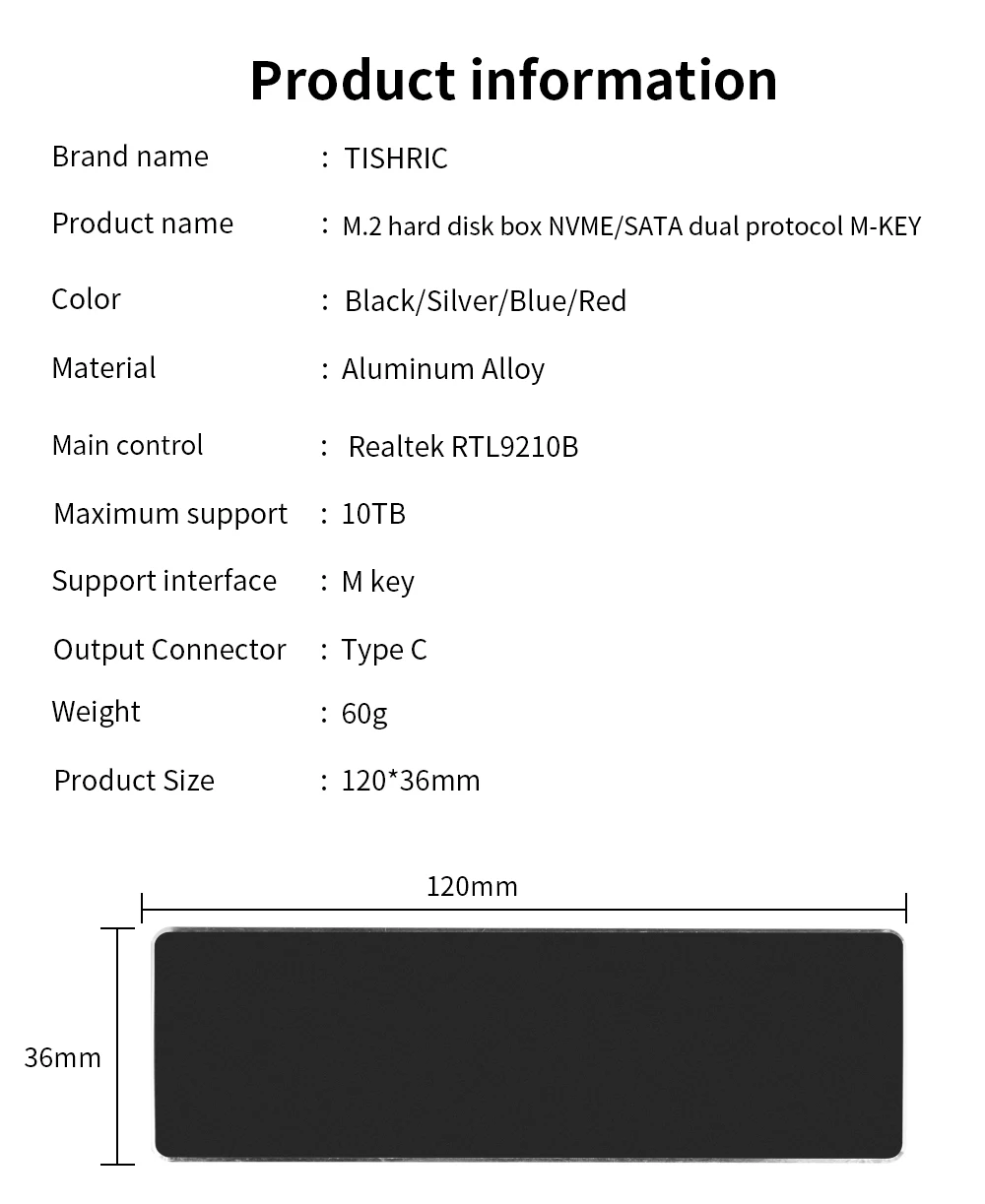 Comprar TISHRIC-carcasa de SSD M.2 Nvme SATA, protocolo Dual, 10gbps, USB 3,1, Gen2, USB C, compatible con teclas M, B y M