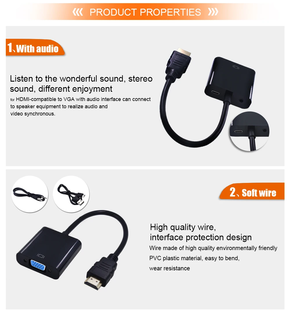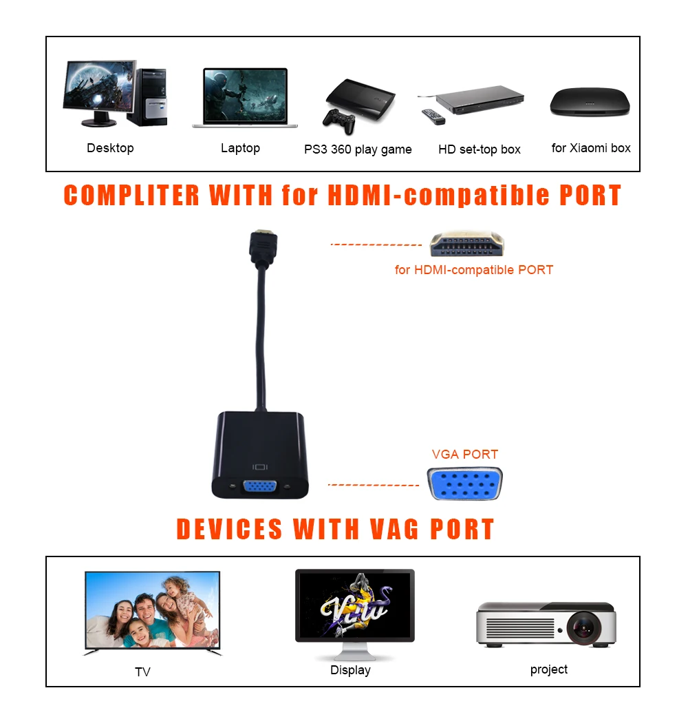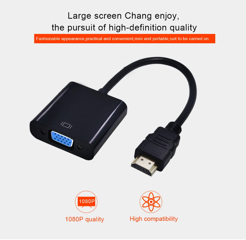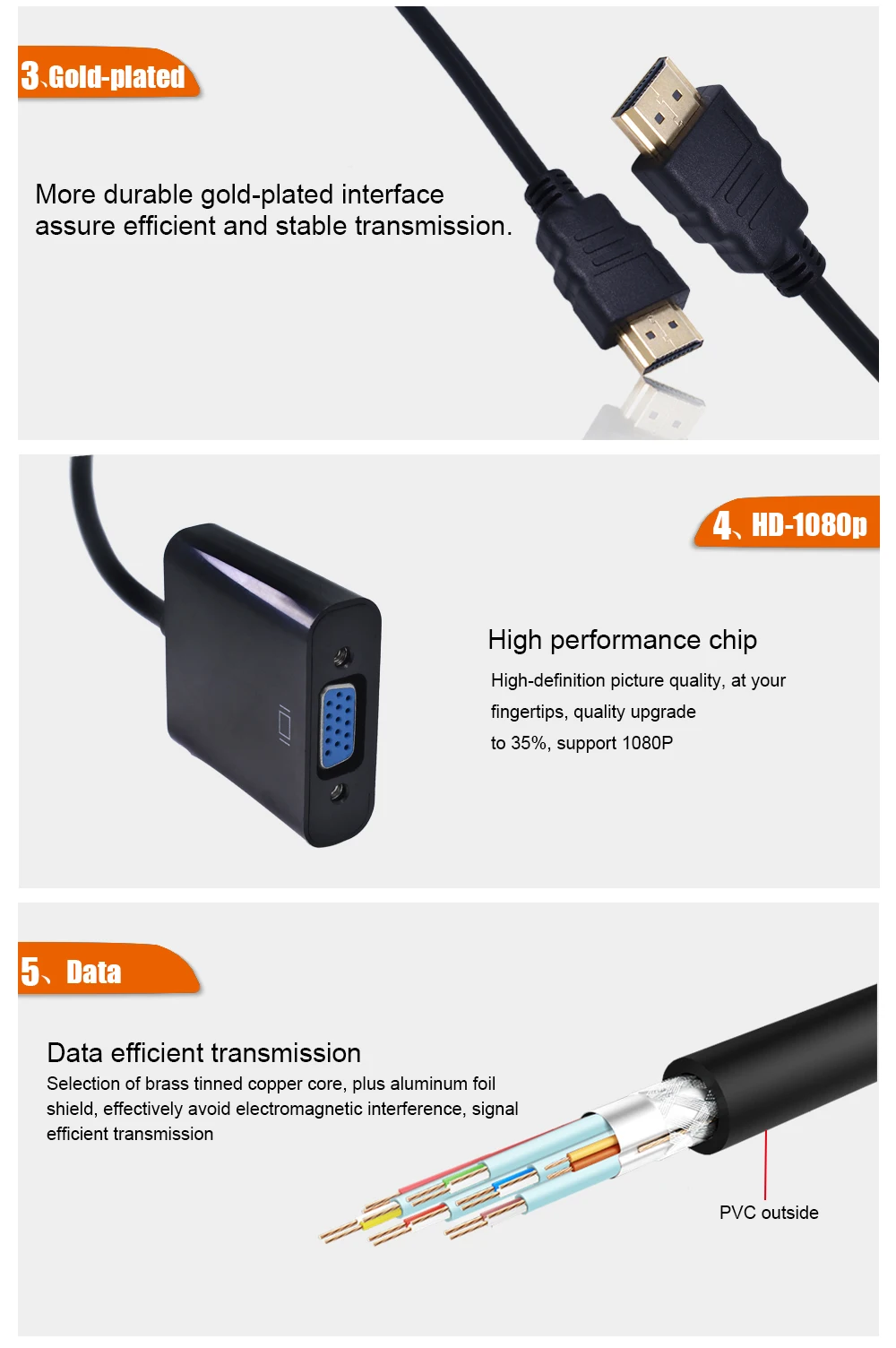 Comprar TISHRIC-convertidor 1080P HDMI compatible con VGA, fuente de alimentación de Audio macho a hembra para tableta, portátil, PC, proyector de TV