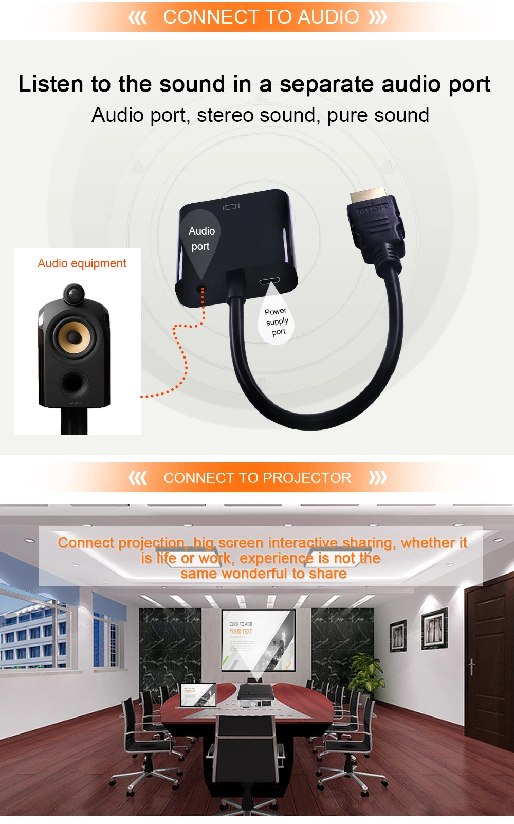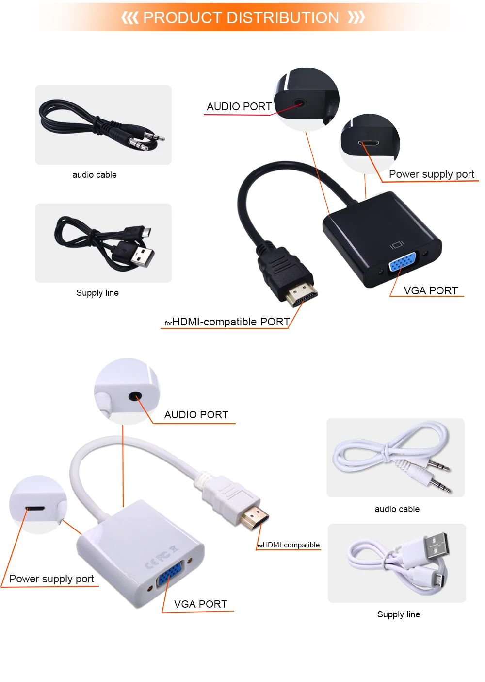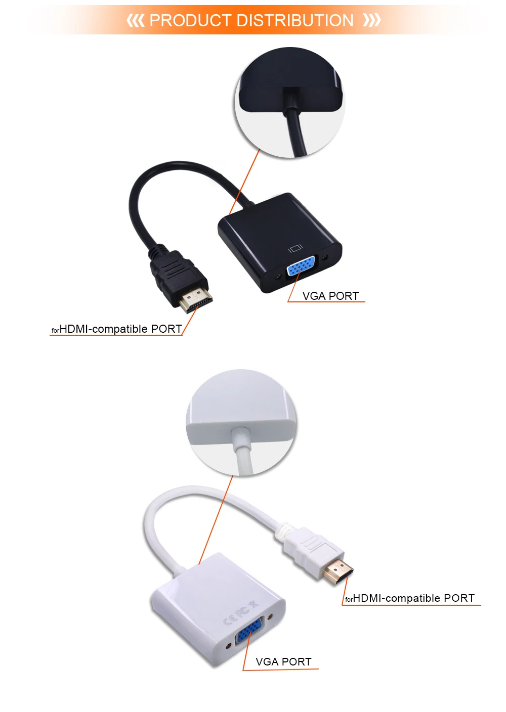 Comprar TISHRIC-convertidor 1080P HDMI compatible con VGA, fuente de alimentación de Audio macho a hembra para tableta, portátil, PC, proyector de TV