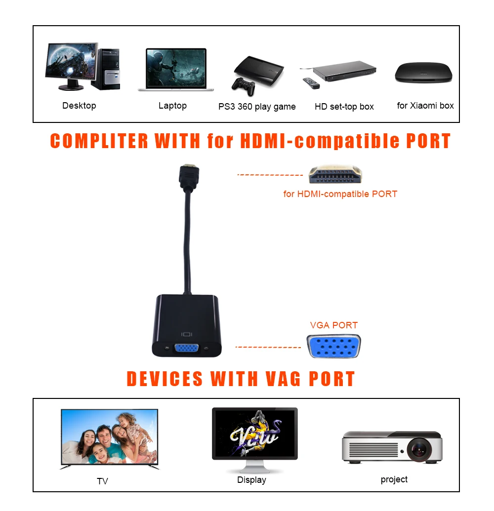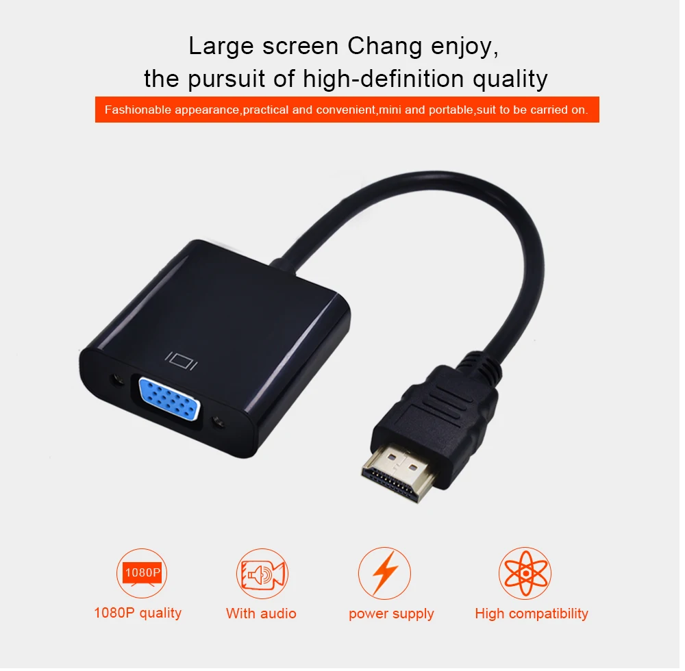 Adaptador Hdmi a VGA TISHRIC 1080P Hdmi VGA convertidor con fuente de alimentación de Audio HDMI macho a VGA hembra para tableta portátil PC TV