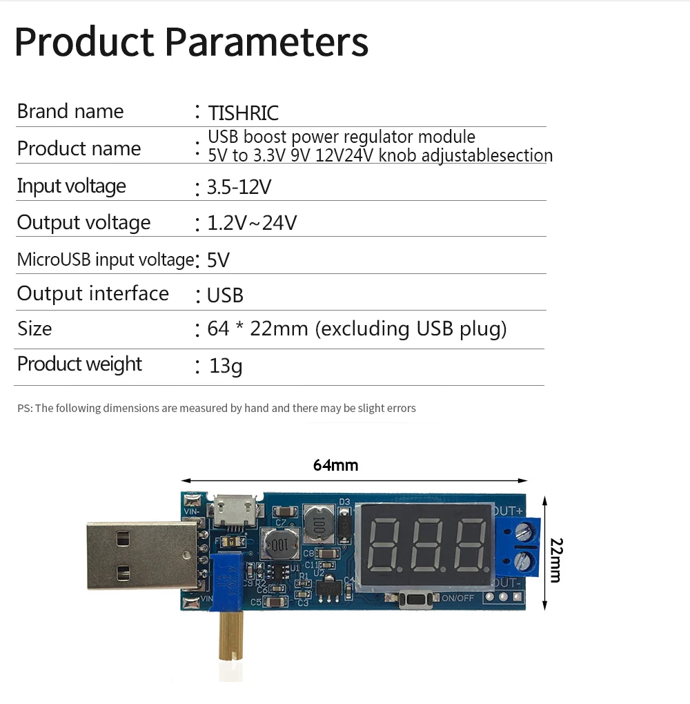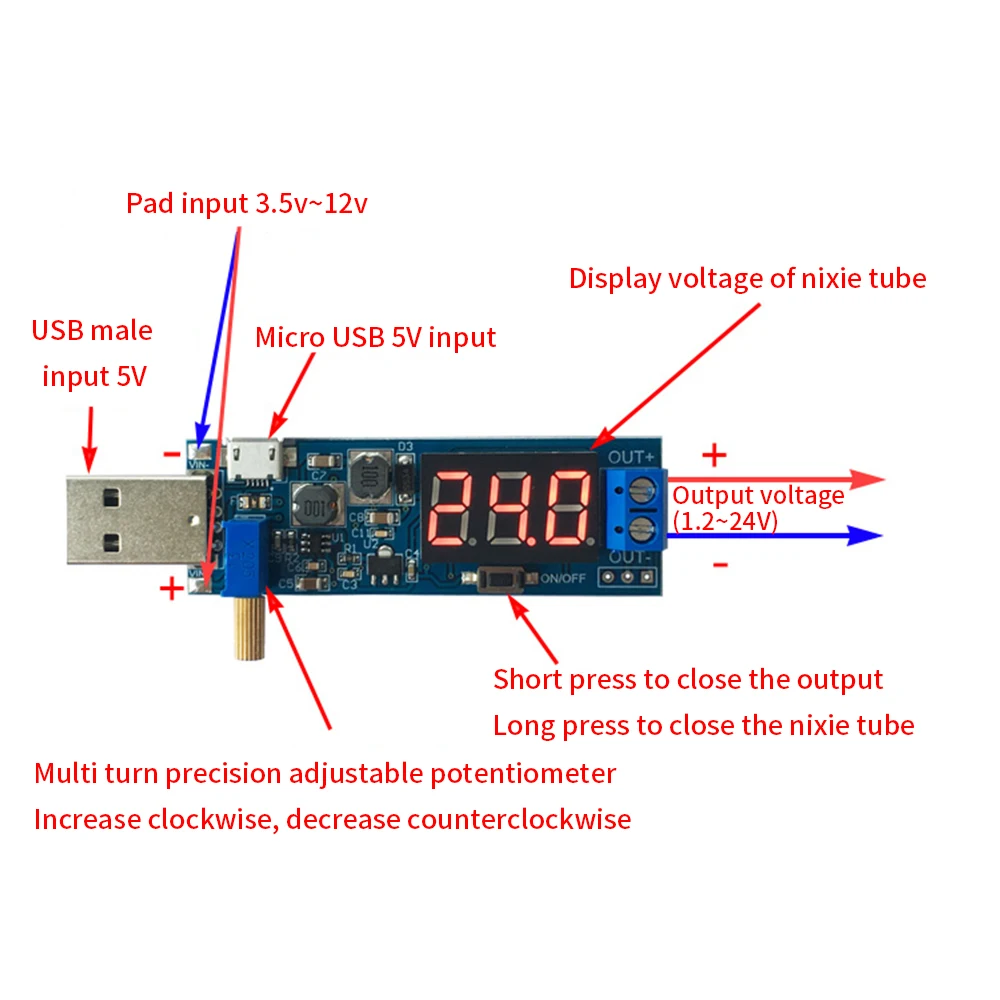Comprar TISHRIC-convertidor USB Boost Buck, módulo de fuente de alimentación Boost, 3,3 V-24V DC salida ajustable, 5V a 1,2 V/12V