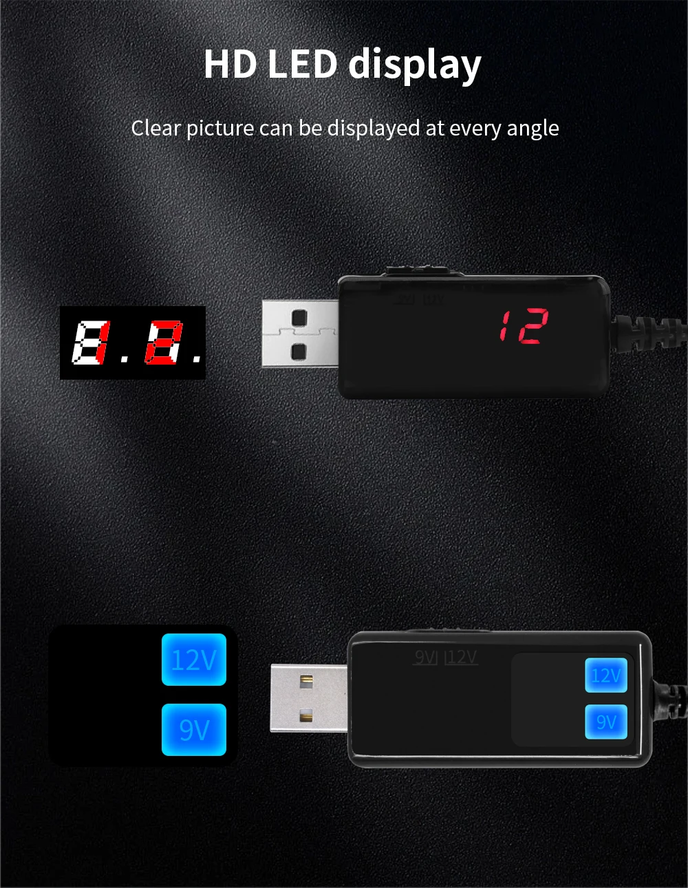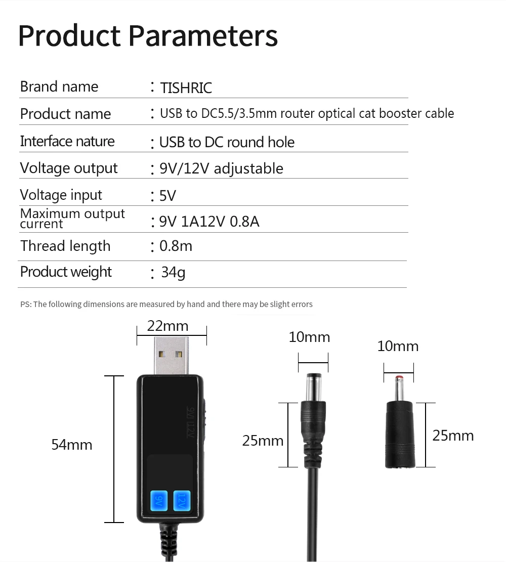 TISHRIC-convertidor USB Boost DC 5V a 9V 12V, Cable de alimentación de 3,5x1,35mm, adaptador de enchufe para fuente de alimentación/cargador
