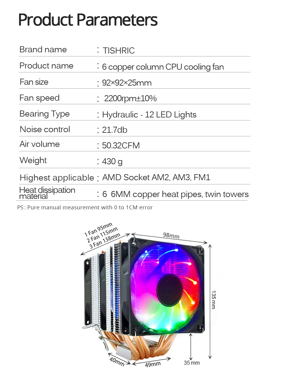 Nombre del producto: ventilador de refrigeración de CPU con columna de cobre 2/4/6