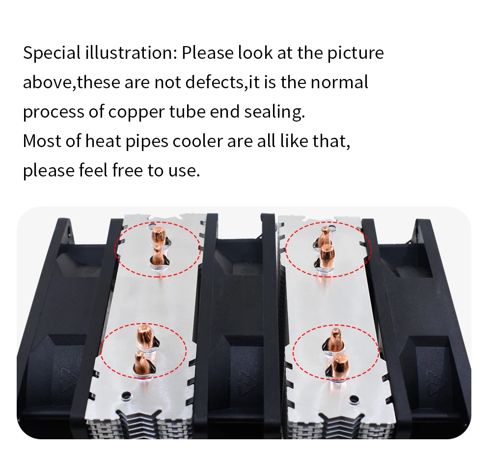 Ventilador de refrigeración de CPU con pilares de cobre 1:2/4/6, el tubo de calor de cobre puro disipa rápidamente el calor