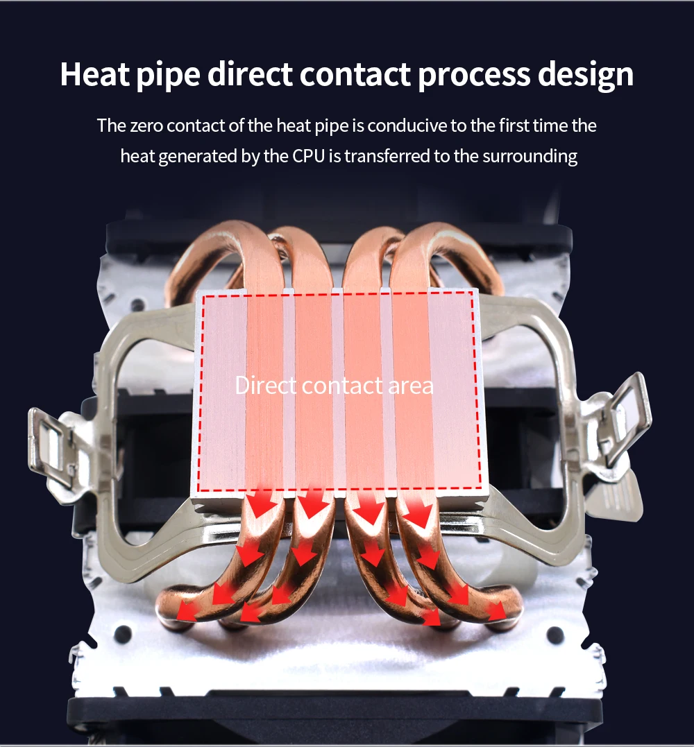 3: Diseño del proceso de contacto directo del tubo de calor. El contacto cero del tubo de calor favorece la primera vez que el calor generado por la CPU se transfiere al entorno.