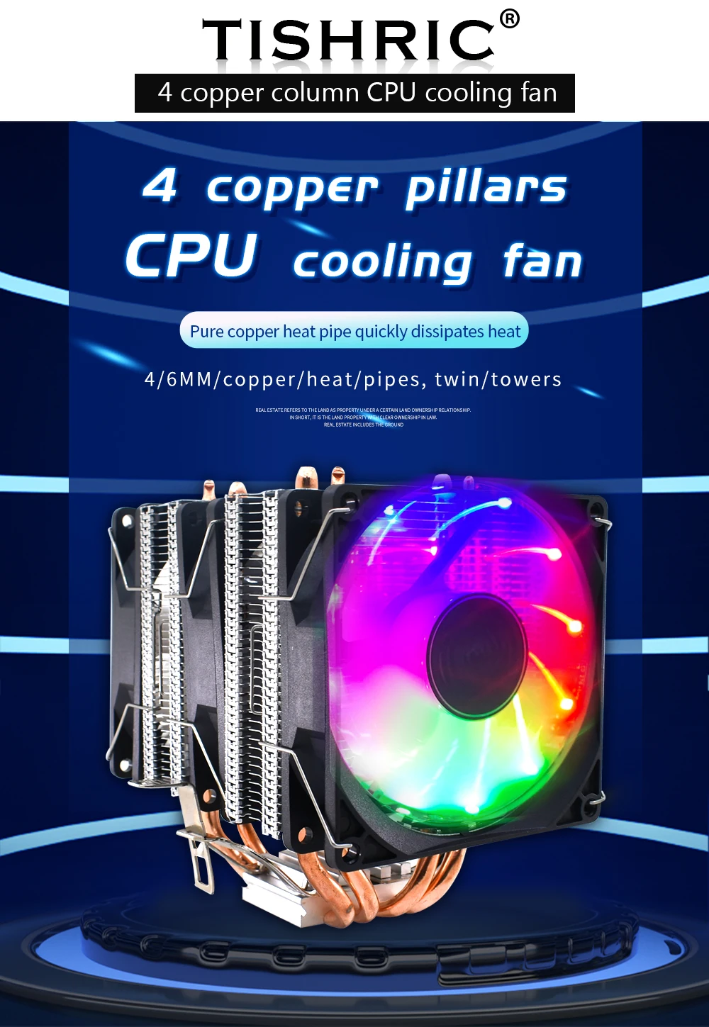 TISHRIC ventilador de refrigeración de CPU RGB 4Pin PWM 4/6 tubos de calor CPU enfriador radiador PC ventilador Intel LGA 2011 1200 1150 1151 1155 X79X99 AM3 AM4