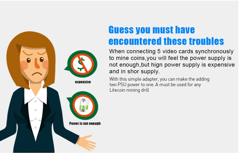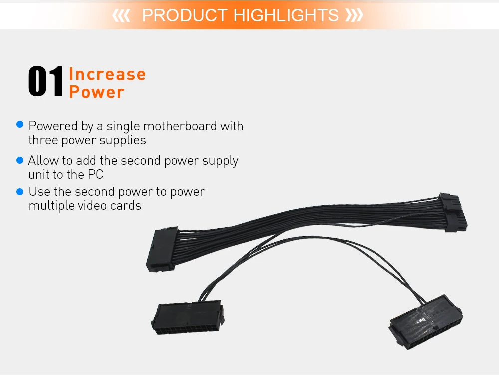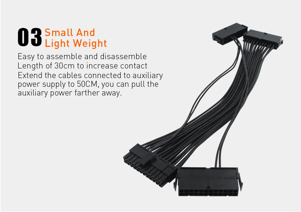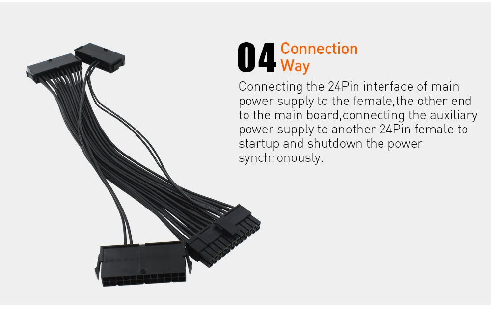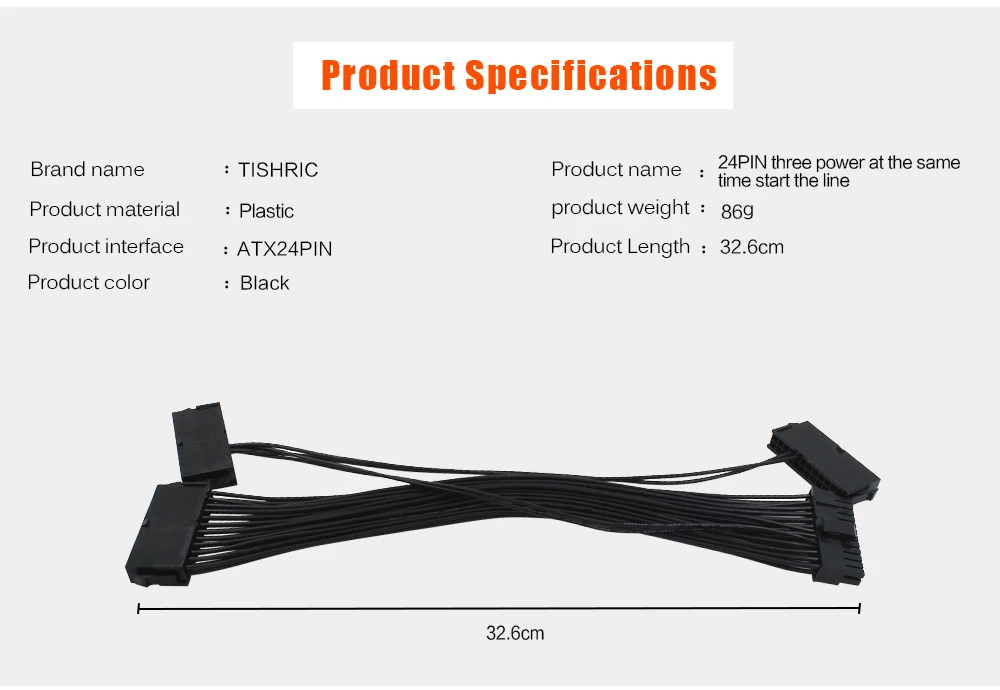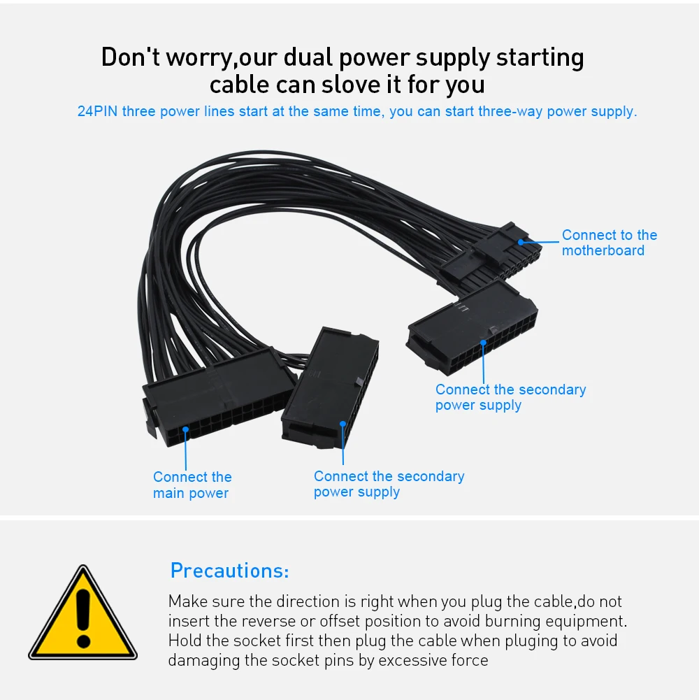 TISHRIC Three PSU ATX 20 + 4 24Pin Extensión de fuente de alimentación ATX 24Pin Adaptador de cable Arrancador síncrono ADD3PSU para minería Bitcoin