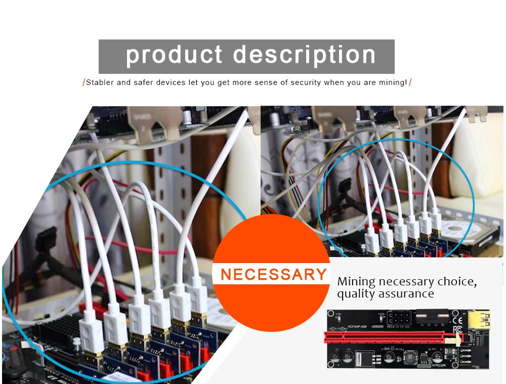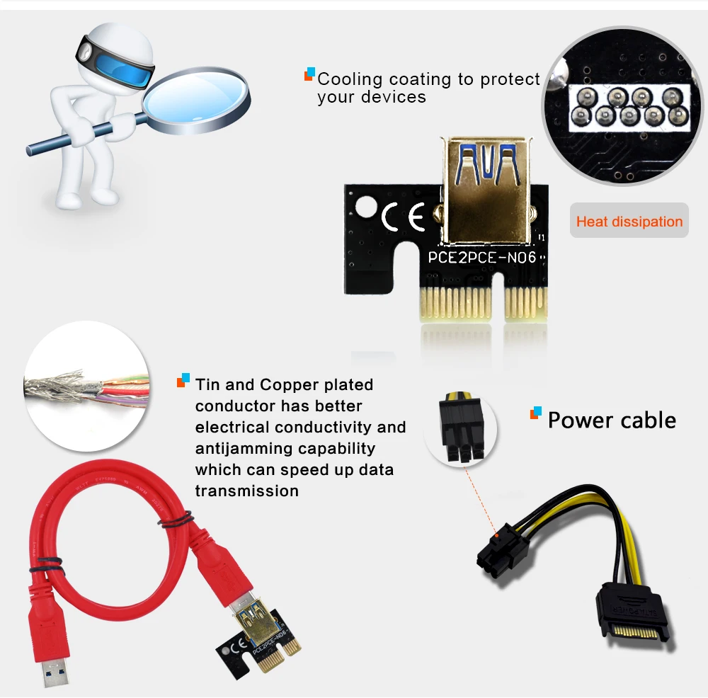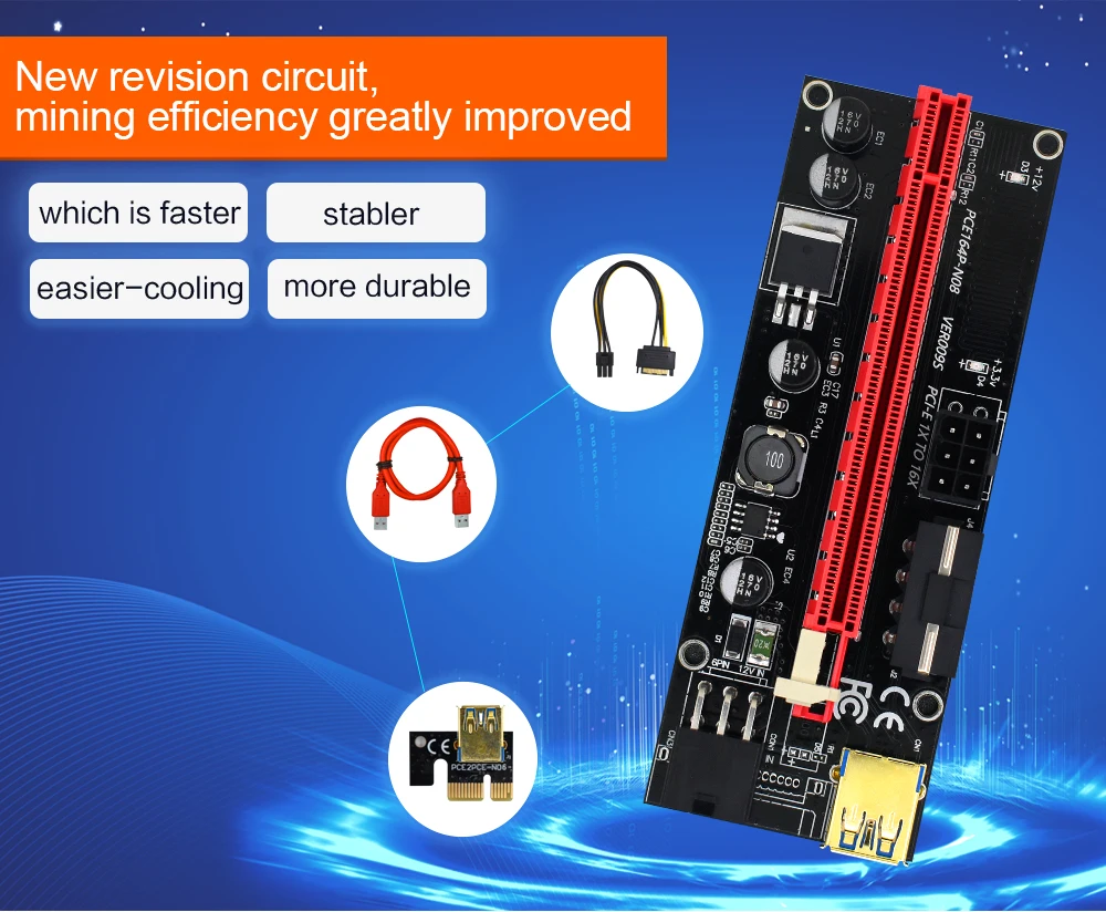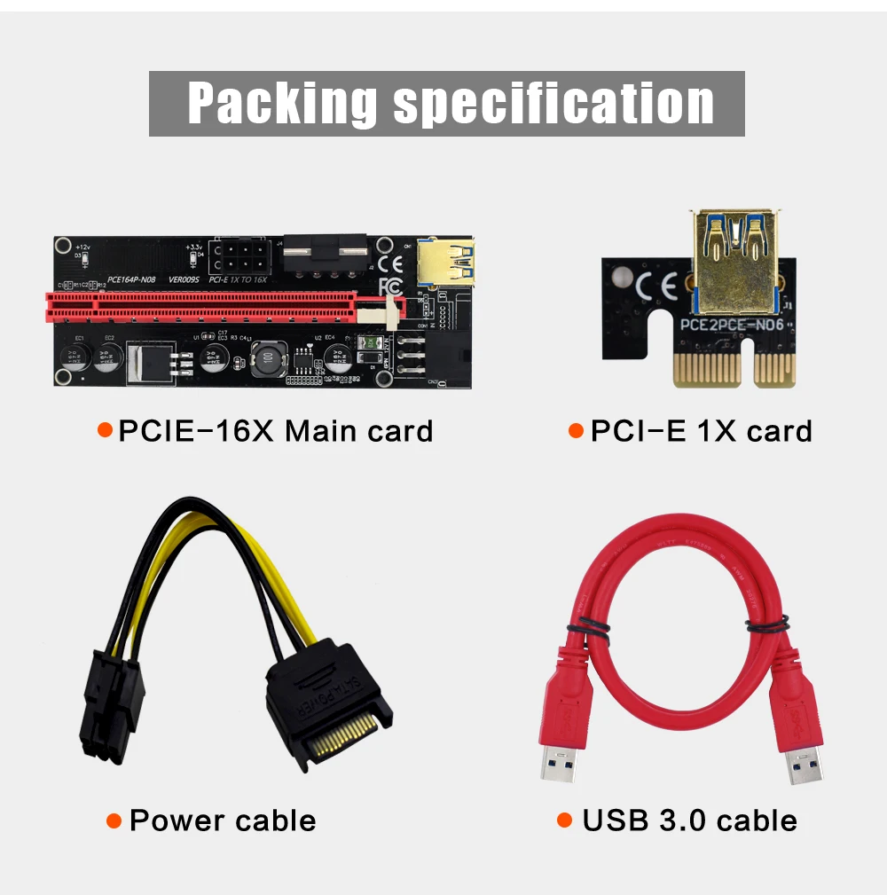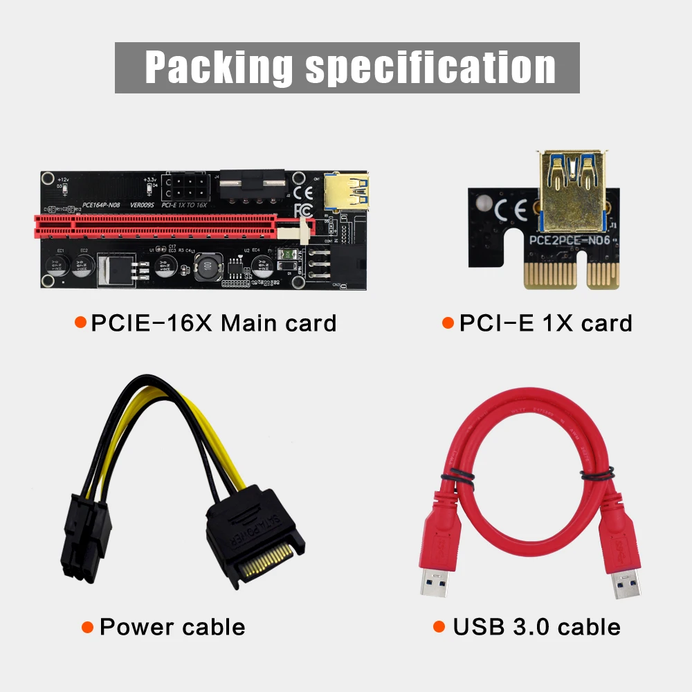 Comprar TISHRIC-extensor PCIE Riser 009s VER009s PCI Express X16, adaptador USB 3,0 a 6 pines, tarjeta elevadora de tarjeta de vídeo para minería BTC