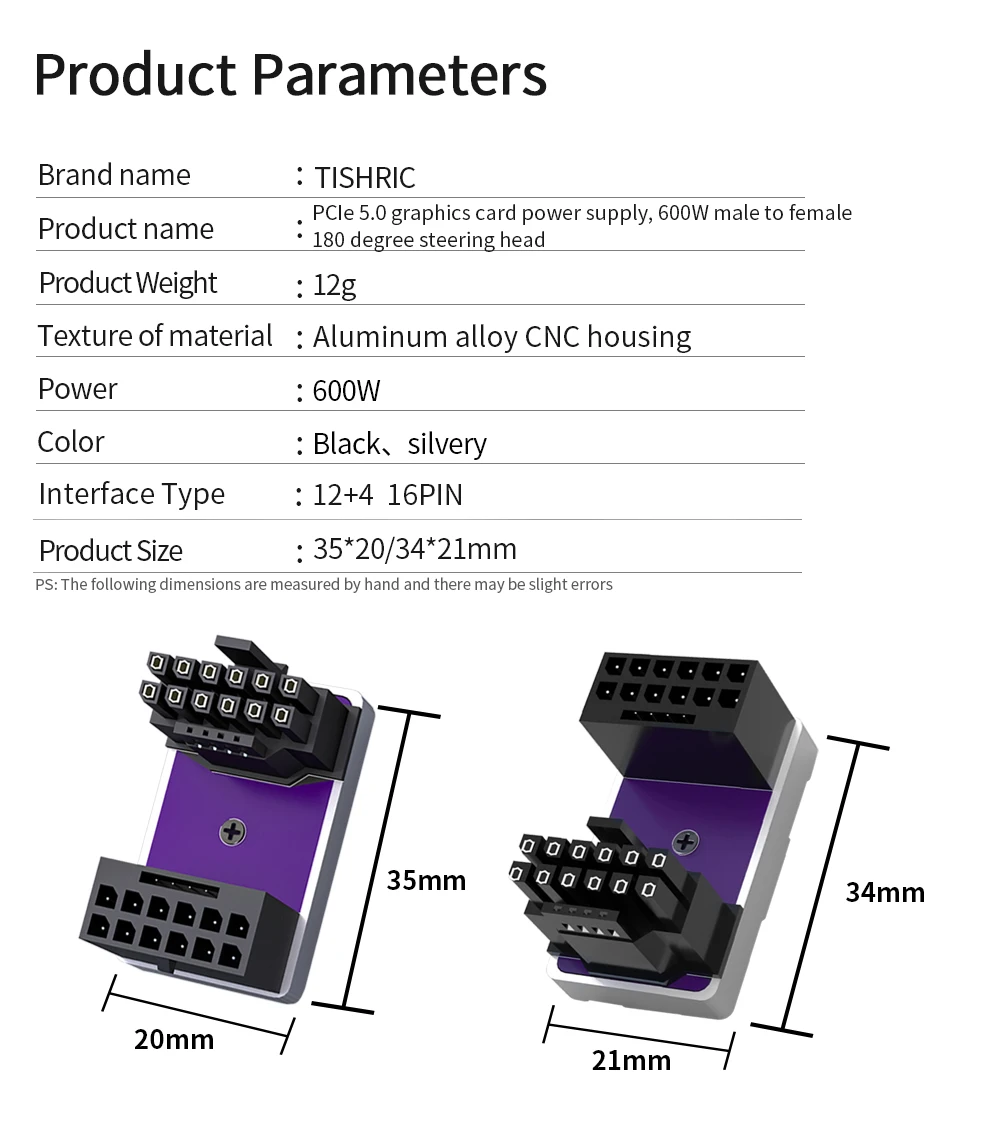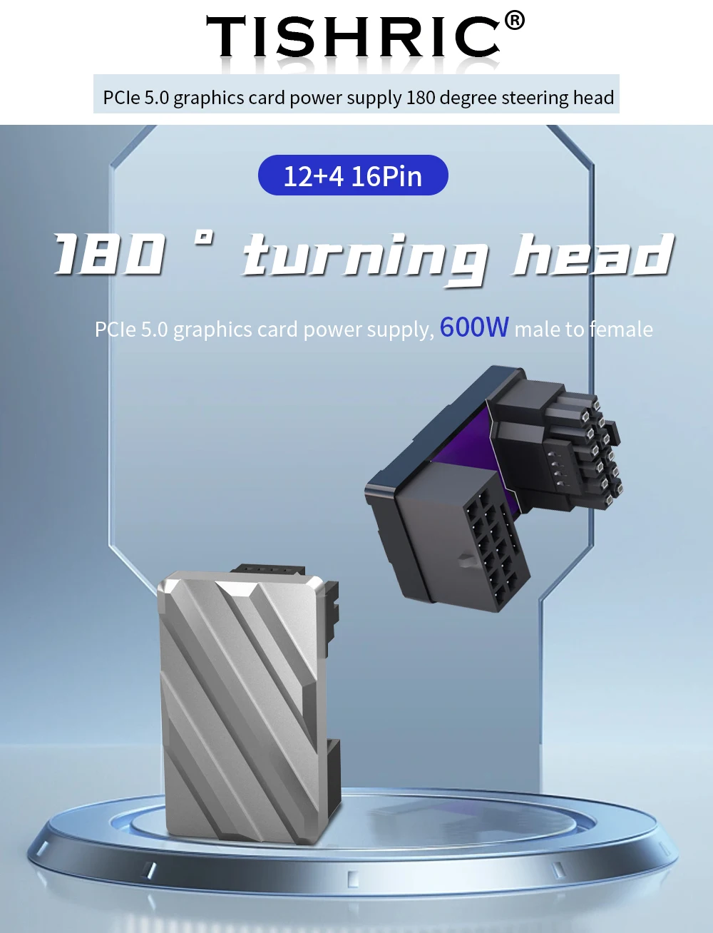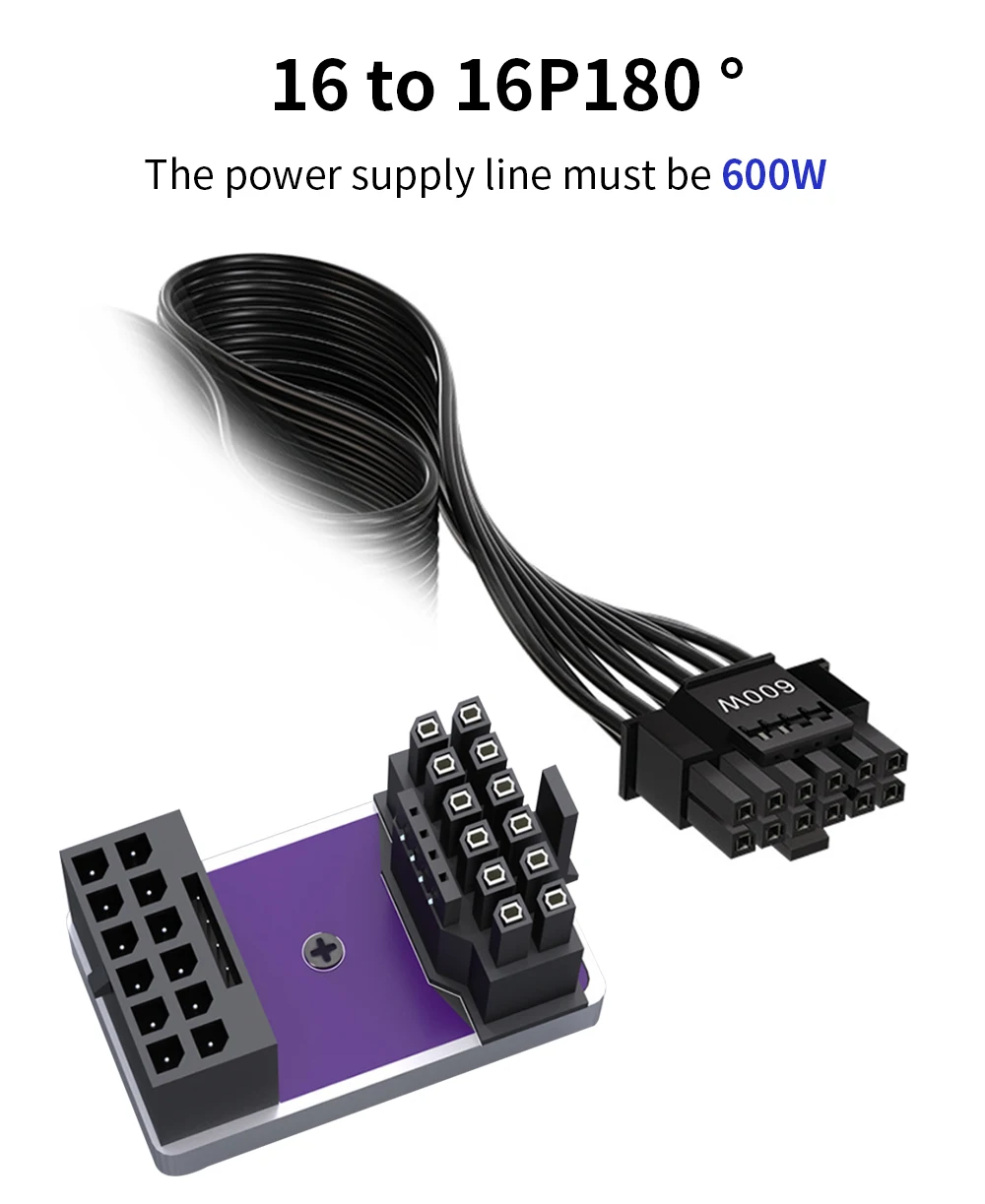 TISHRIC PCIe5.0 Tarjeta gráfica Fuente de alimentación 12 + 4Pin 16PIN Macho a hembra Cabezal de dirección de 180 grados para tarjeta de video gráfica de escritorio