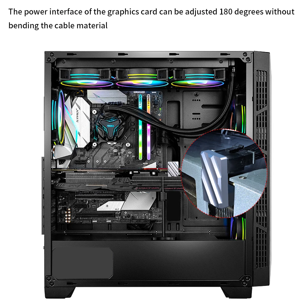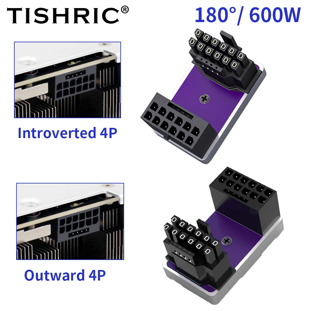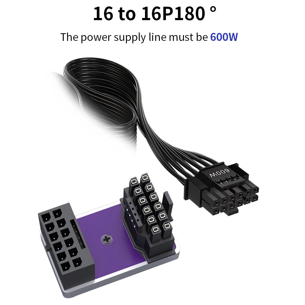 TISHRIC PCIe5.0 Tarjeta gráfica Fuente de alimentación 12 + 4Pin 16PIN Macho a hembra Cabezal de dirección de 180 grados para tarjeta de video gráfica de escritorio