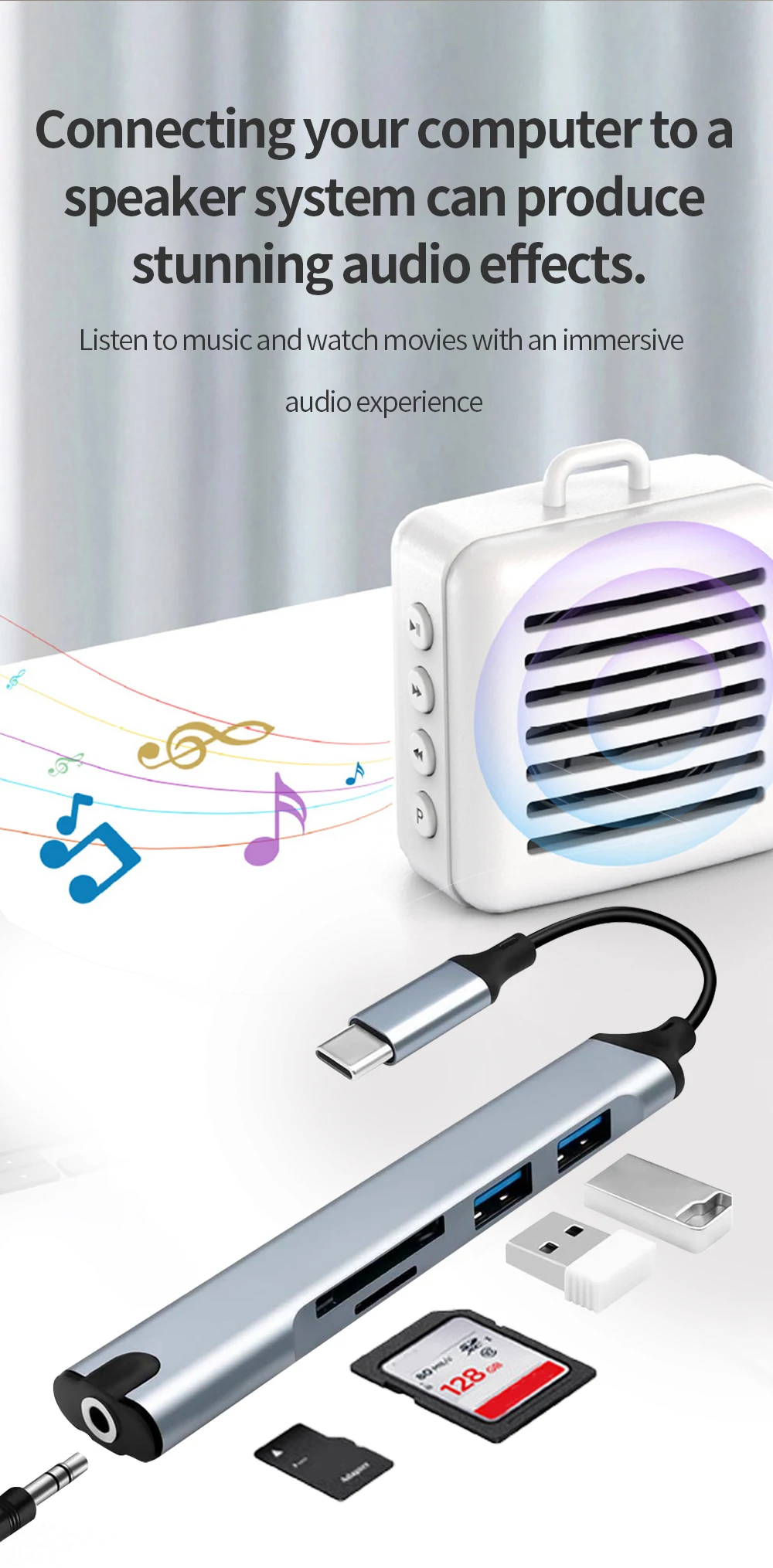 TISHRIC Hub USB Base de expansión tipo C 5 en 1, expansor multipuerto USB, puerto de auriculares, Hub de velocidad, base de expansión para ordenador portátil y PC