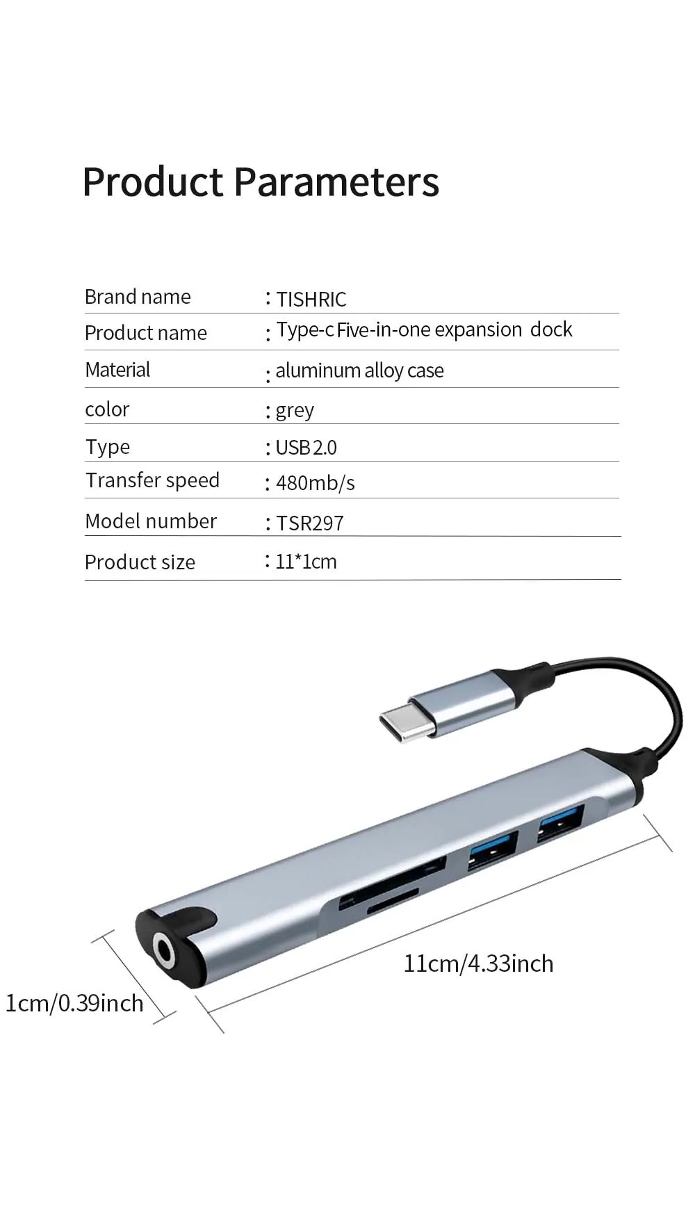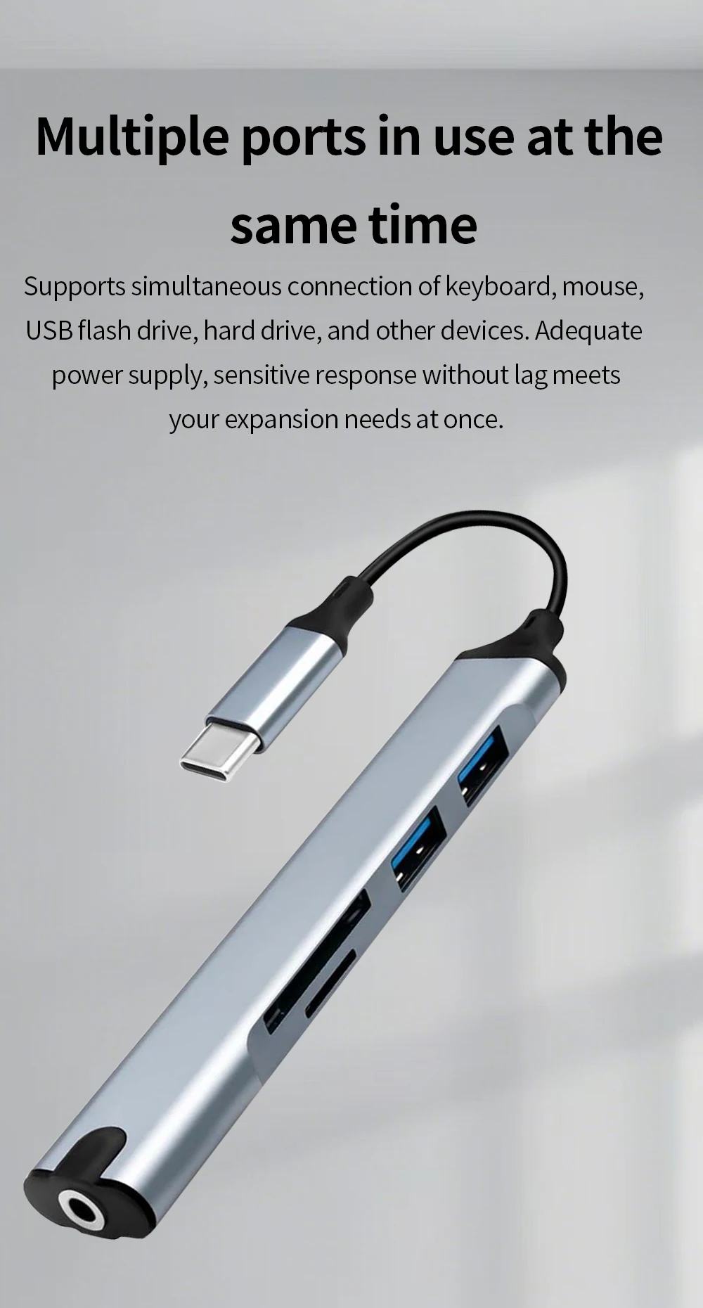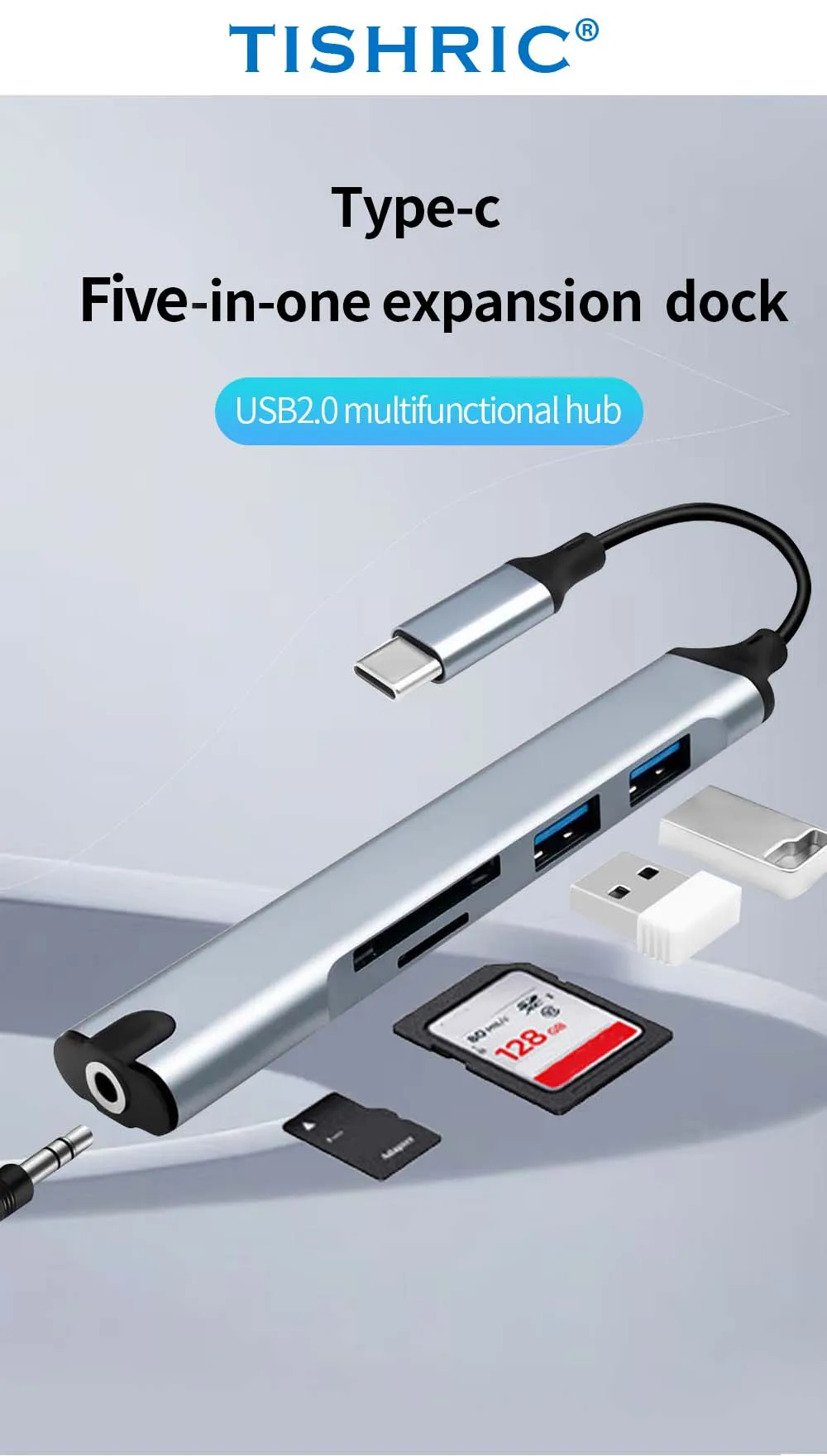 Comprar TISHRIC-Hub USB 5 en 1, base de expansión tipo C, expansor multipuerto USB, puerto de auriculares, concentrador de velocidad, base de expansión para ordenador portátil y PC