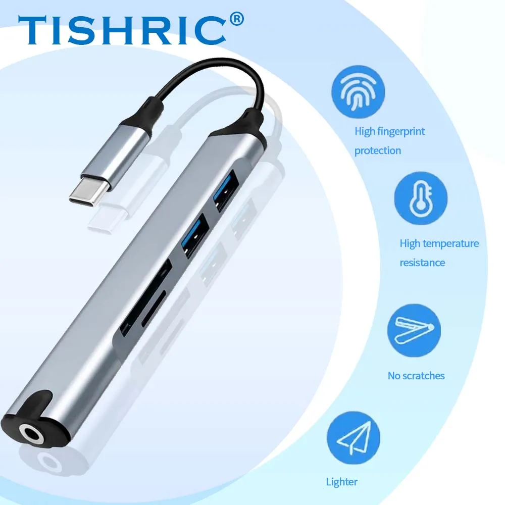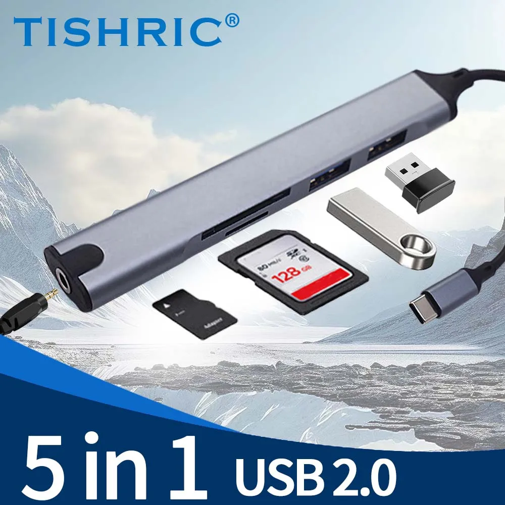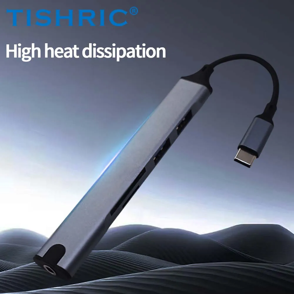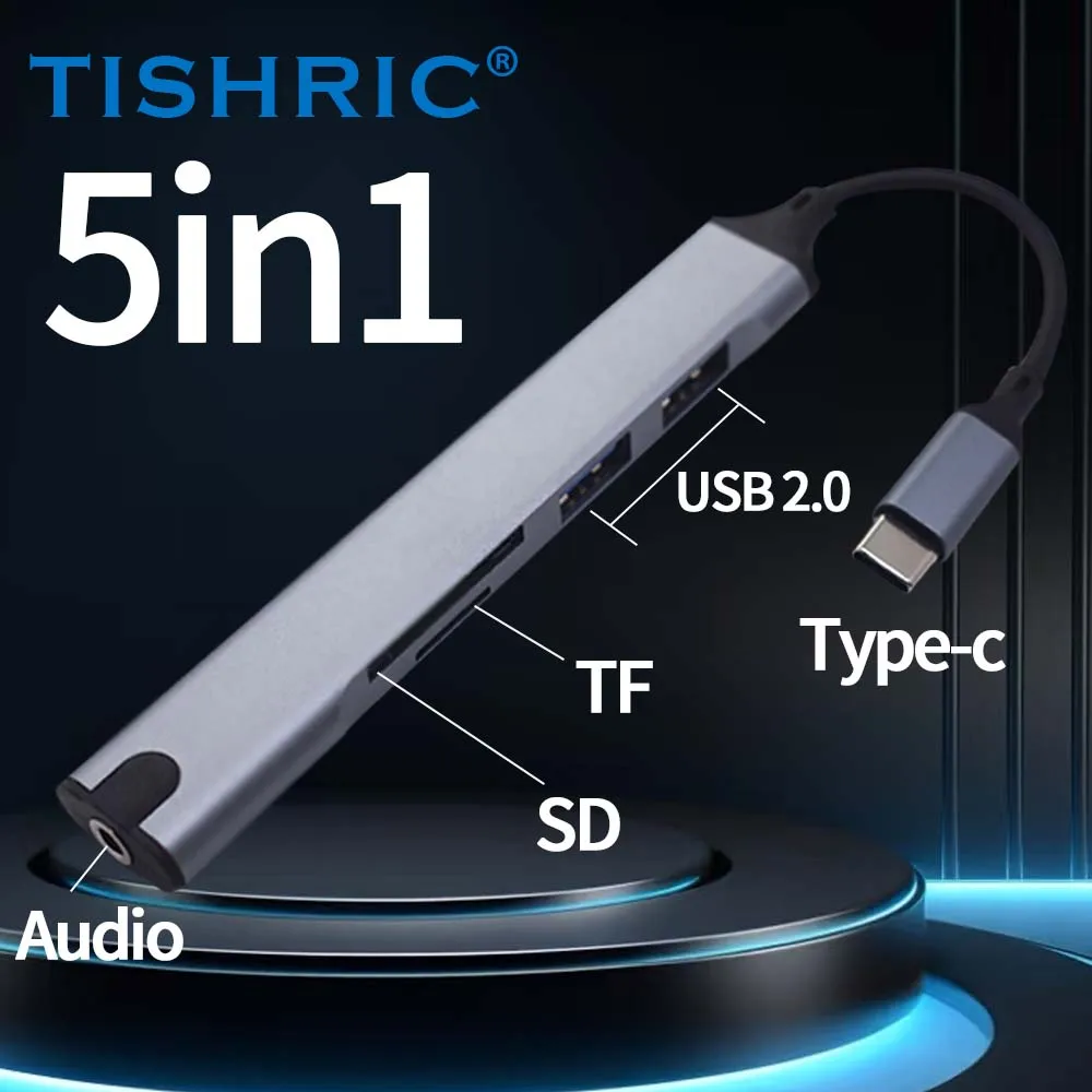 Comprar TISHRIC-Hub USB 5 en 1, base de expansión tipo C, expansor multipuerto USB, puerto de auriculares, concentrador de velocidad, base de expansión para ordenador portátil y PC